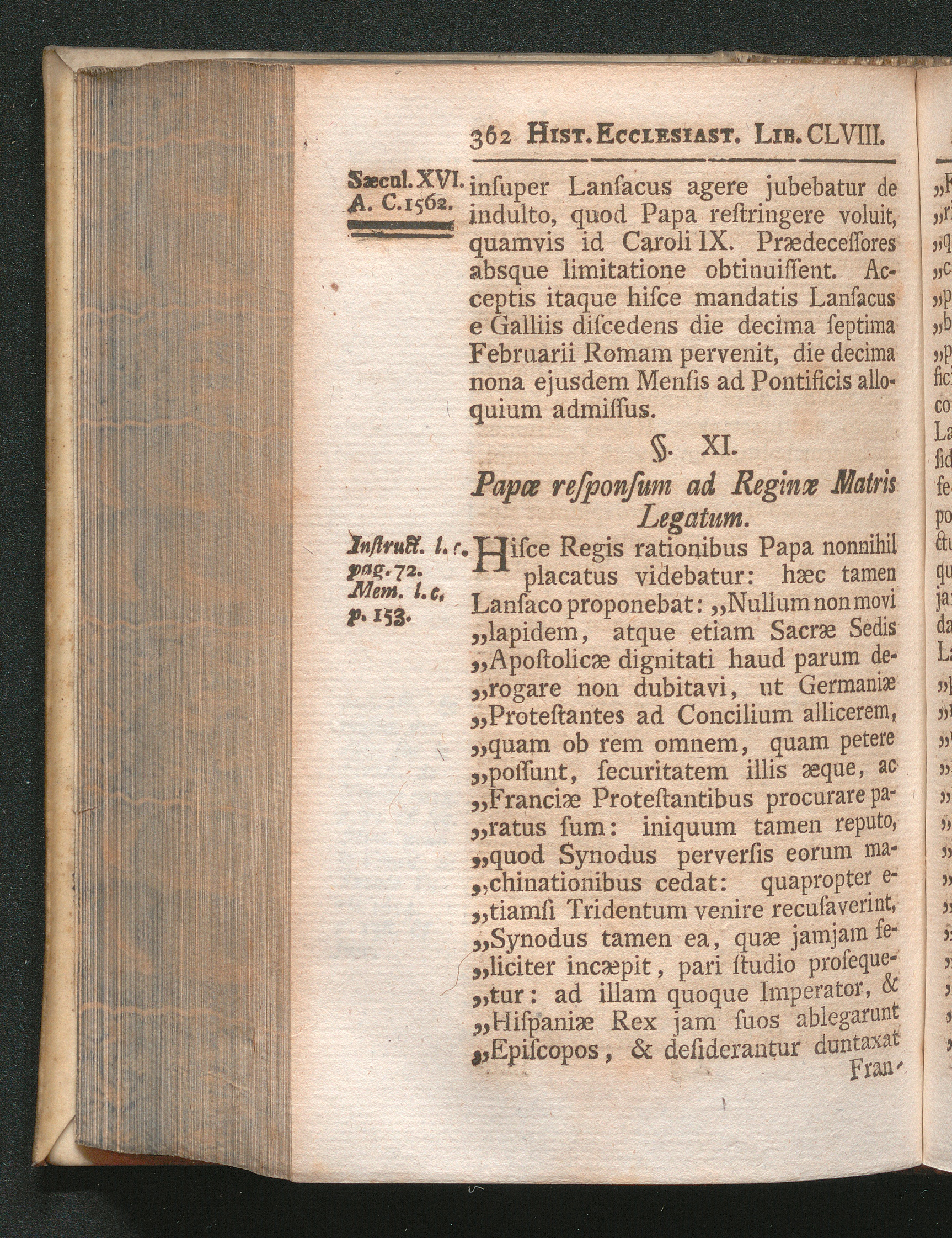 §. 11. Papæ responsum ad Reginæ Matris Legatum.
