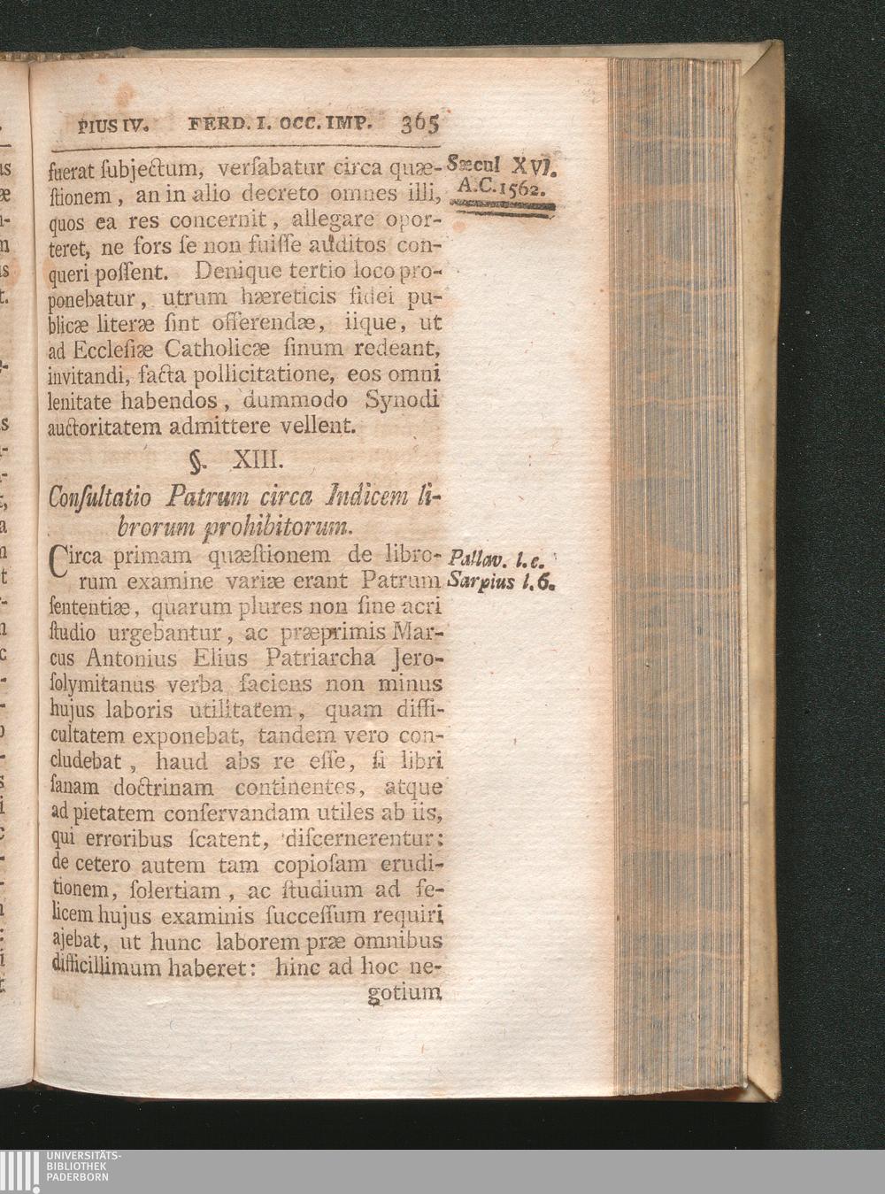 §. 13. Consultatio Patrum circa Indicem librorum prohibitorum.