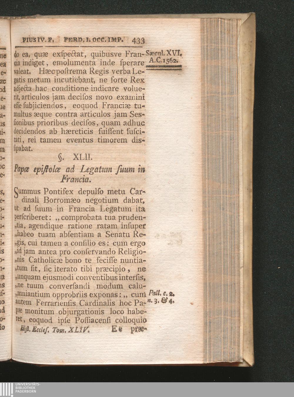 §. 42. Papæ epistolæ ad Legatum suum in Francia.