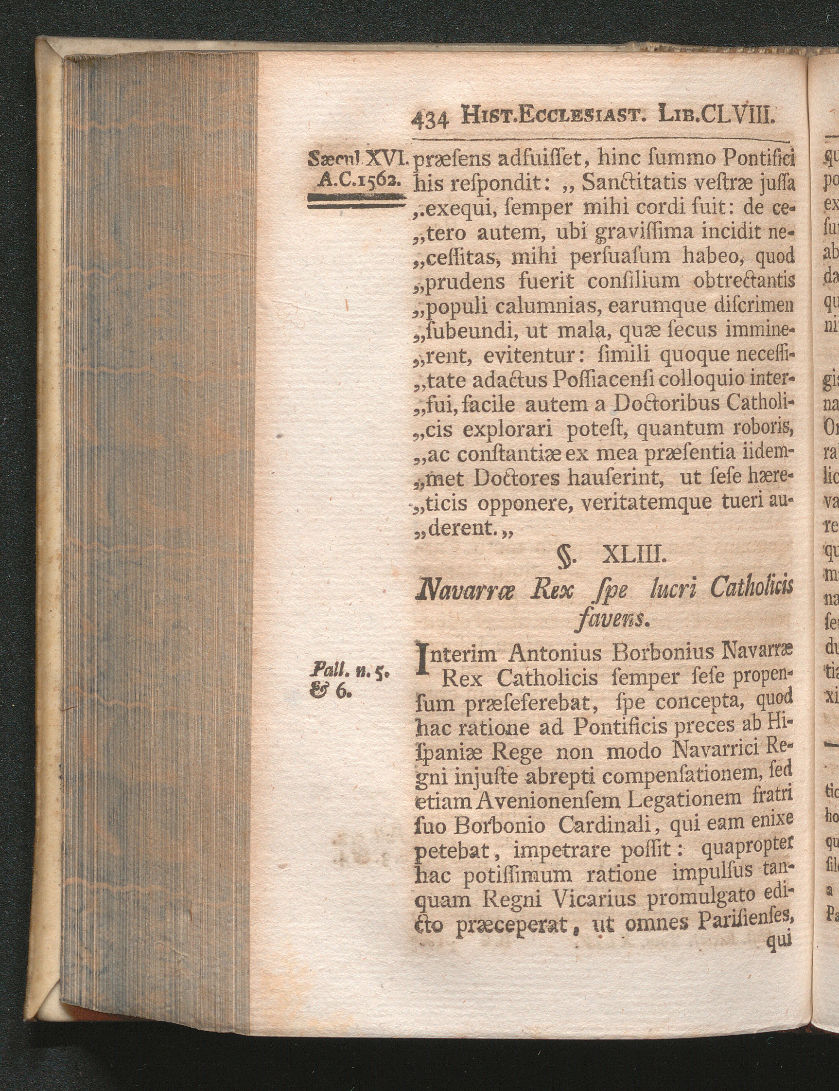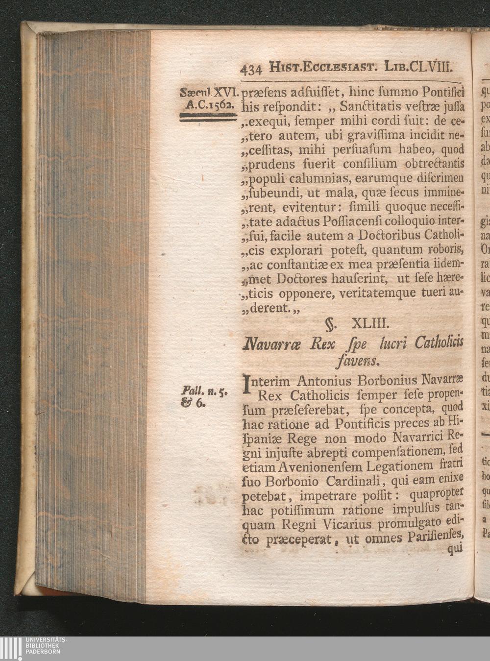 §. 43. Navarræ Rex spe lucri Catholicis favens.