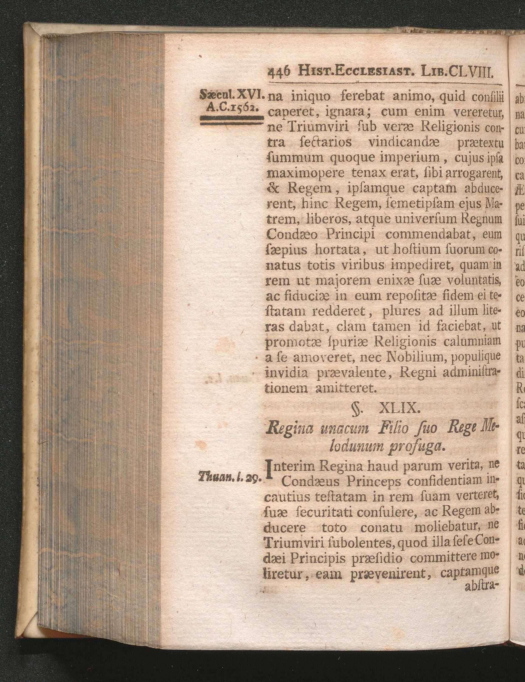 §. 49. Regina unacum Filio suo Rege Melodunum profuga.