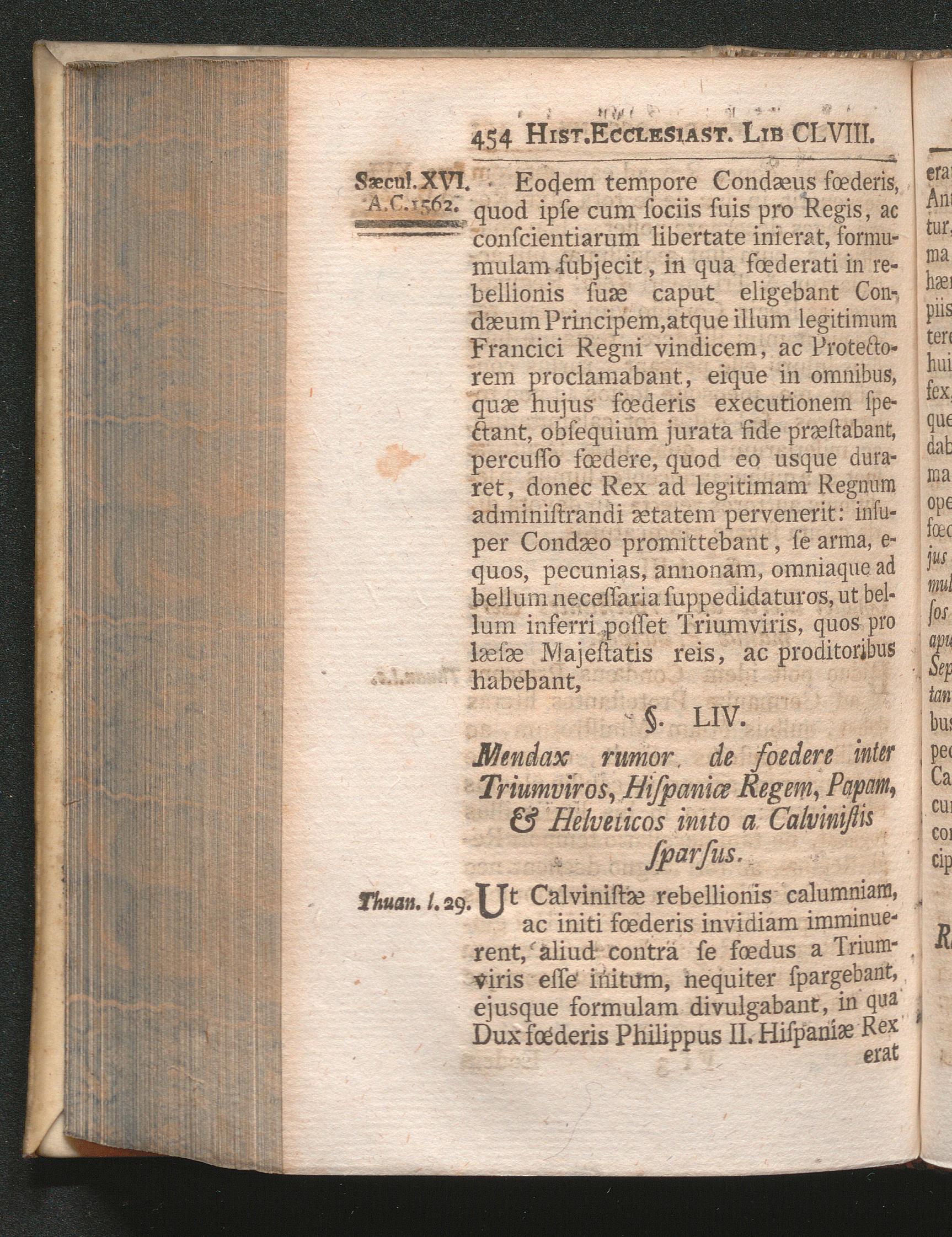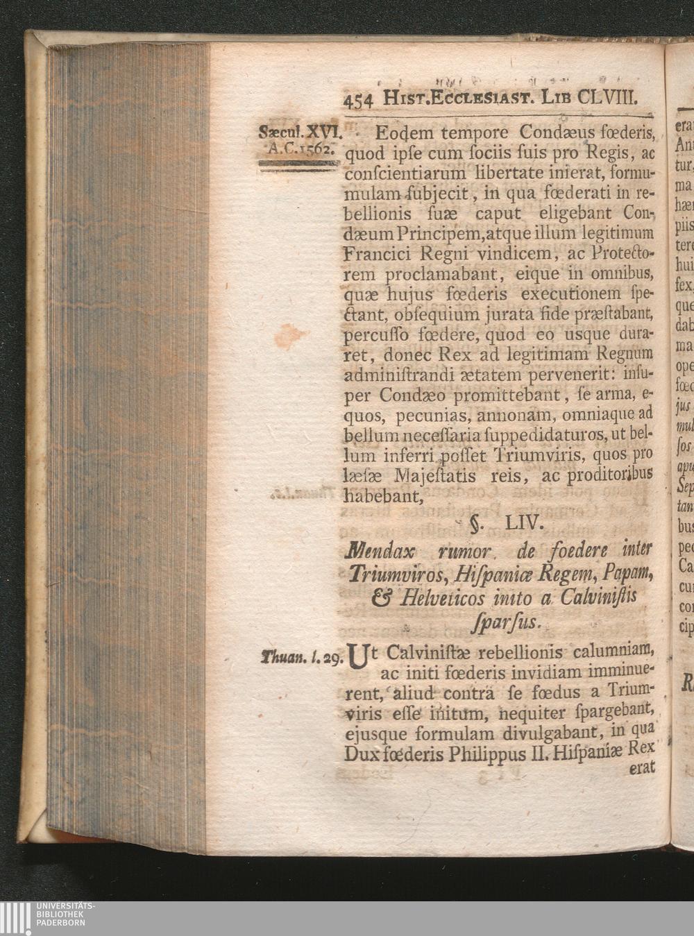 §. 54. Mendax rumor de fœdere inter Triumviros, Hispaniæ Regem, Papam & Helvetios[...]