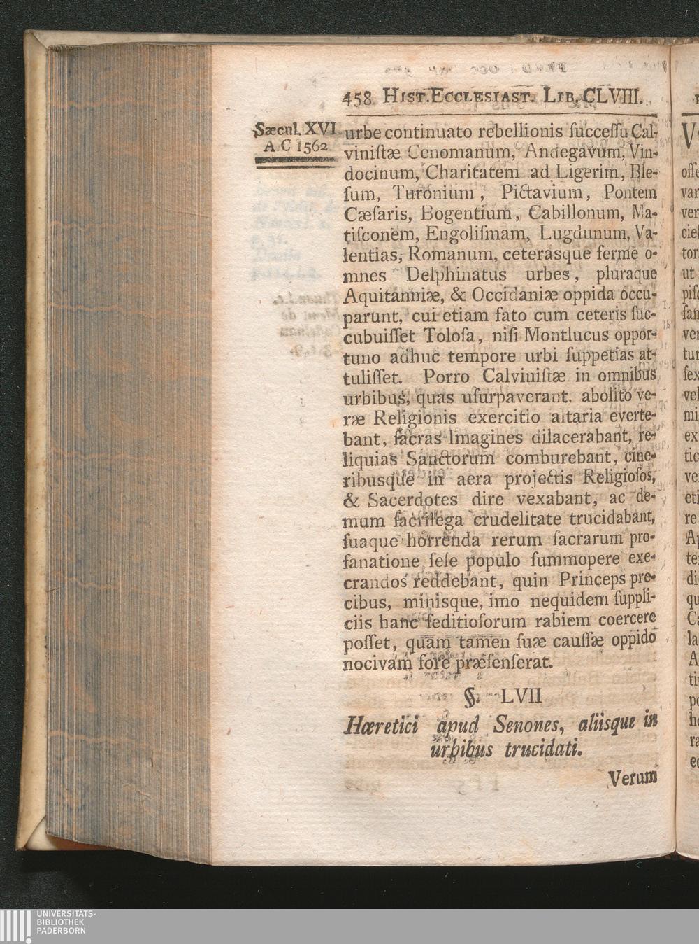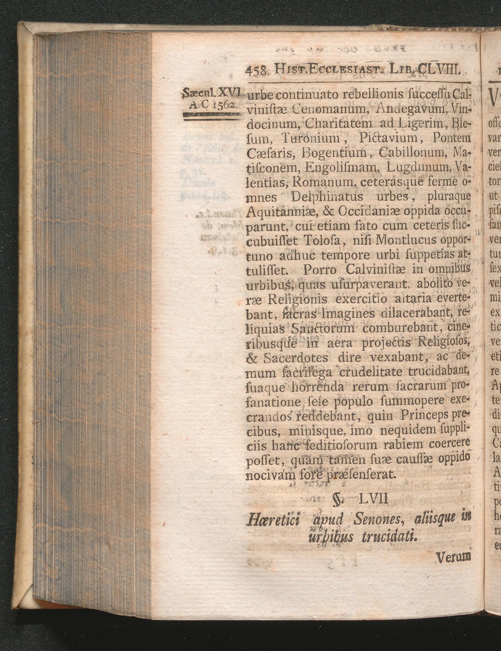 §. 57. Hæretici apud Senones, aliisque in urbibus trucidati.
