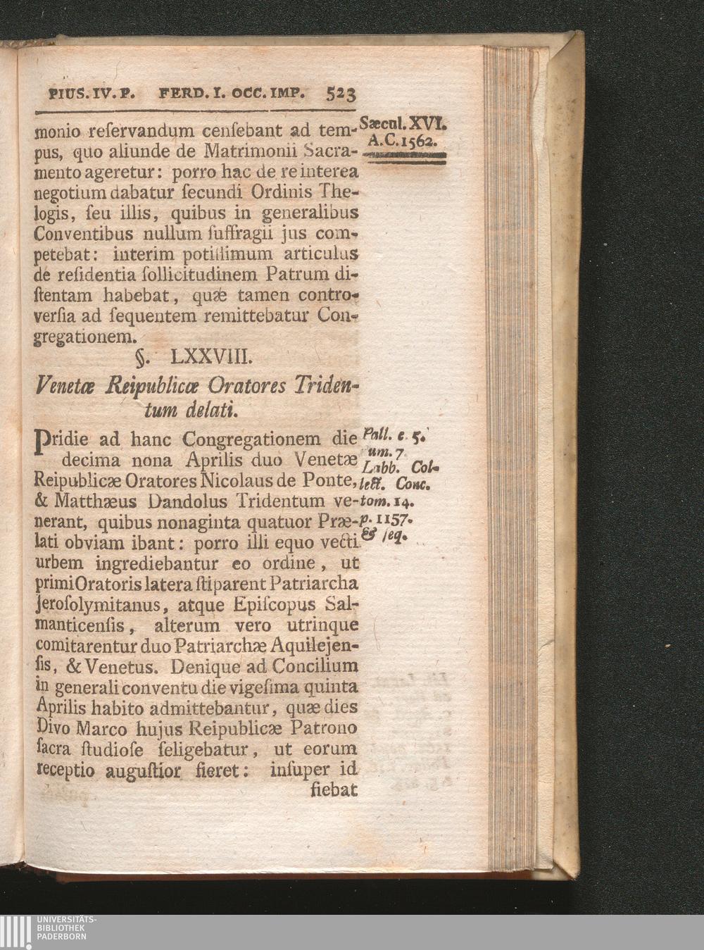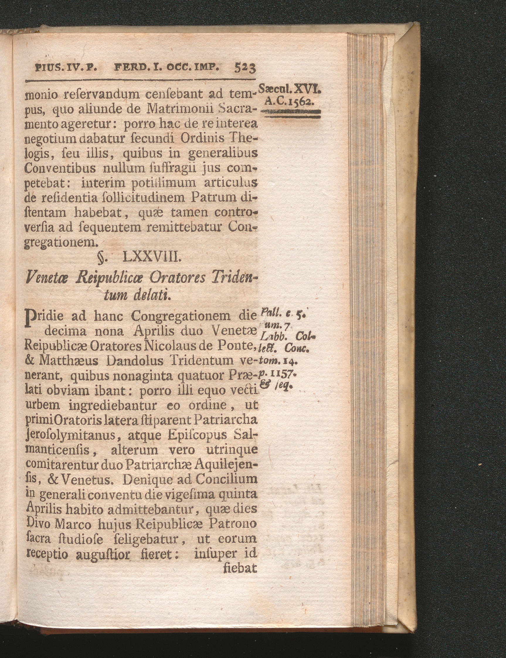§. 78. Venetæ Reipublicæ Oratores Tridentum delati.
