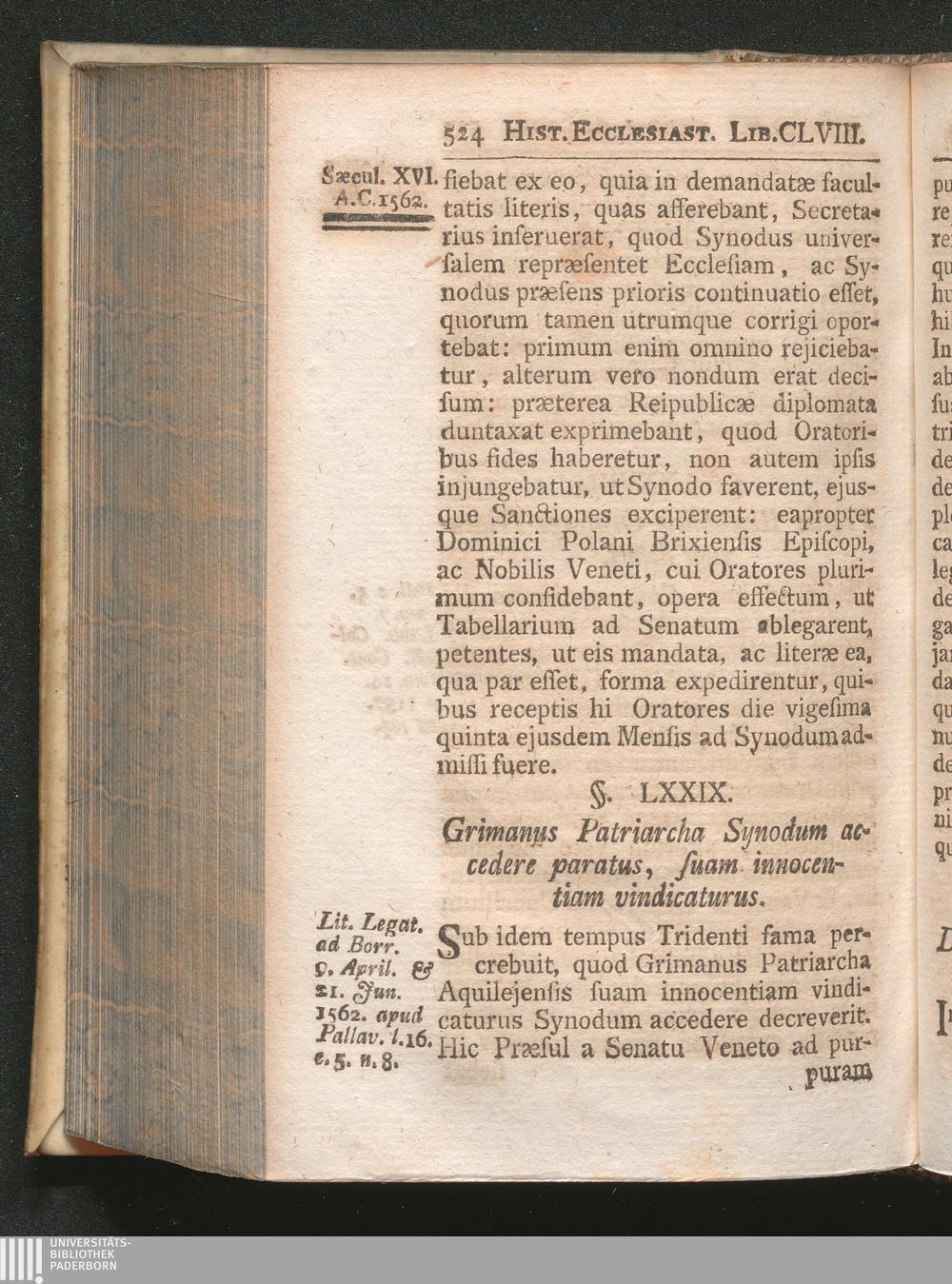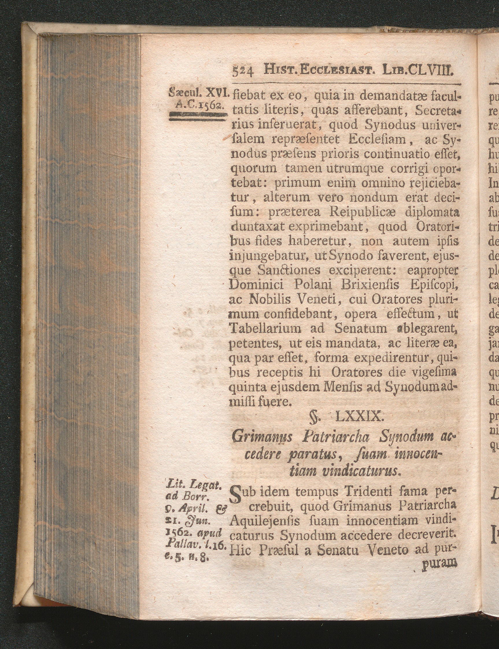 §. 79. Grimanus Patriarcha Synodum accedere paratus, suam innocentiam vindicatur[...]