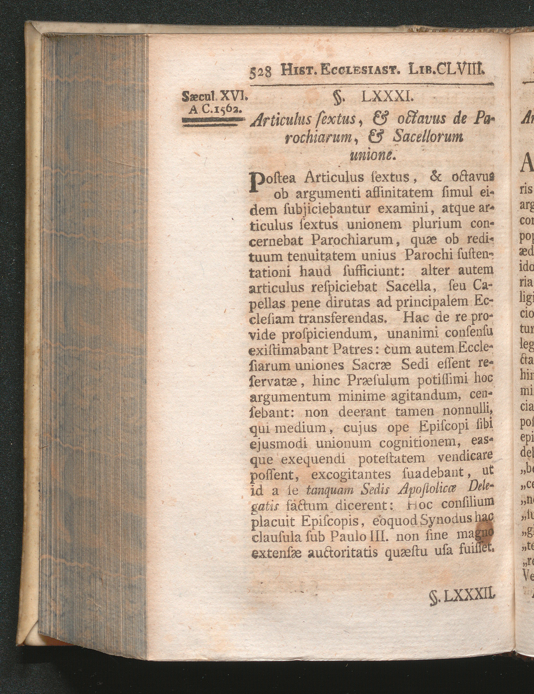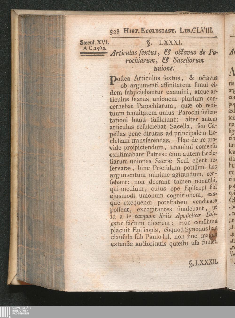 §. 81. Articulus sextus, & octavus de Parochiarum, & Sacellorum unione.