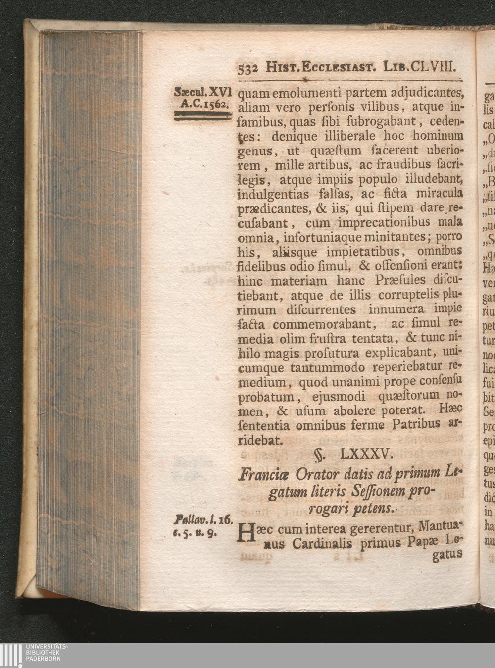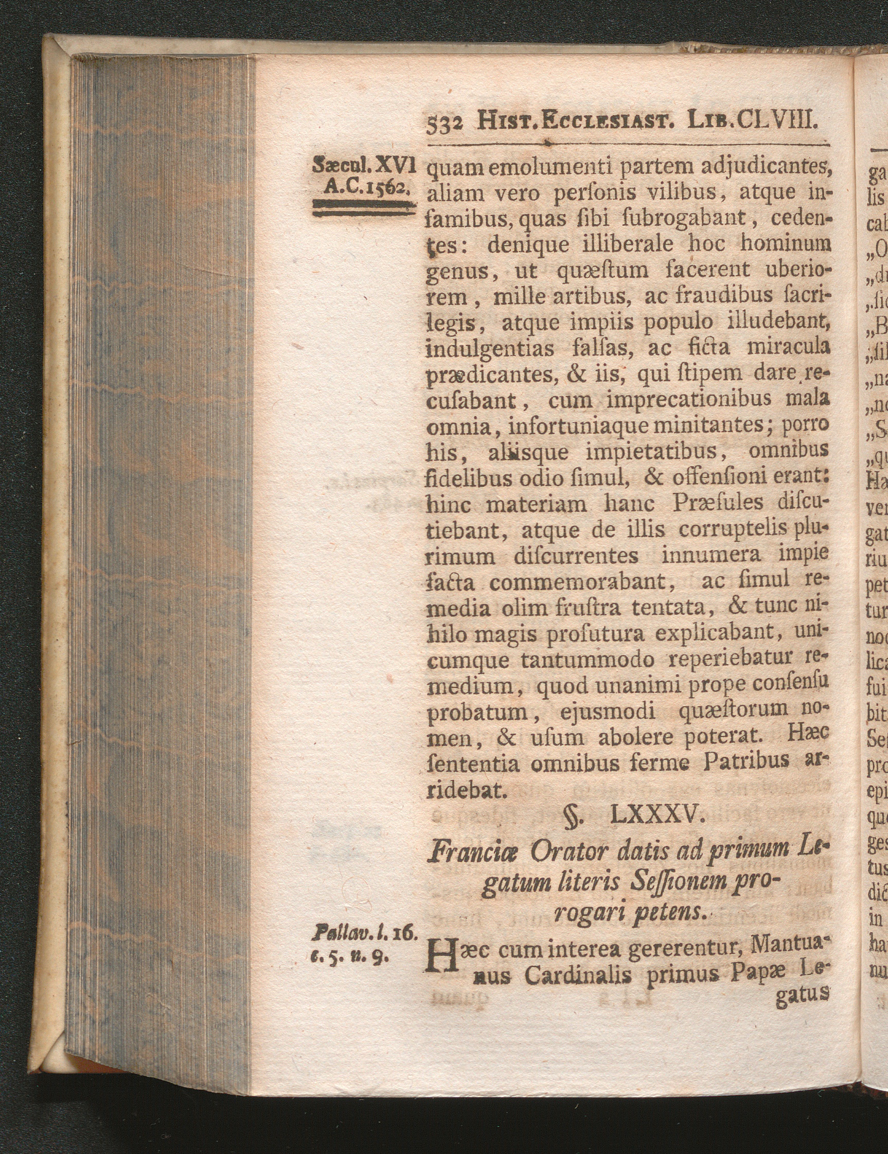 §. 85. Franciæ Orator datis ad primum Legatum literis Sessionem prorogari petens[...]
