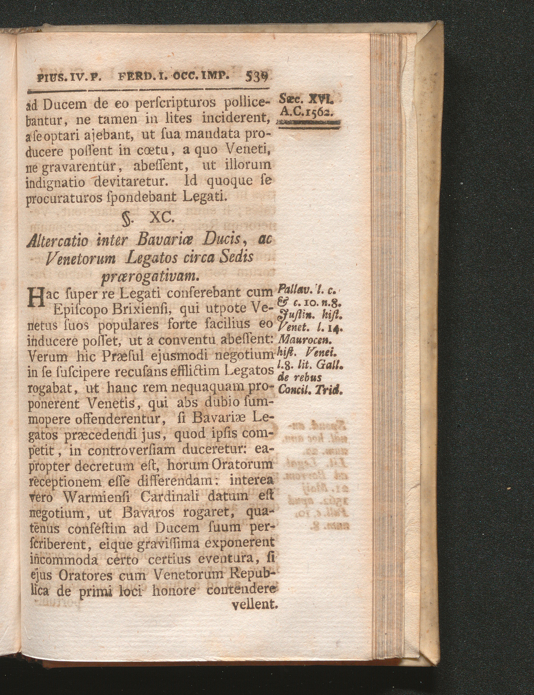 §. 90. Altercatio inter Bavariæ Ducis, ac Venetorum Legatos circa Sedis prærogat[...]