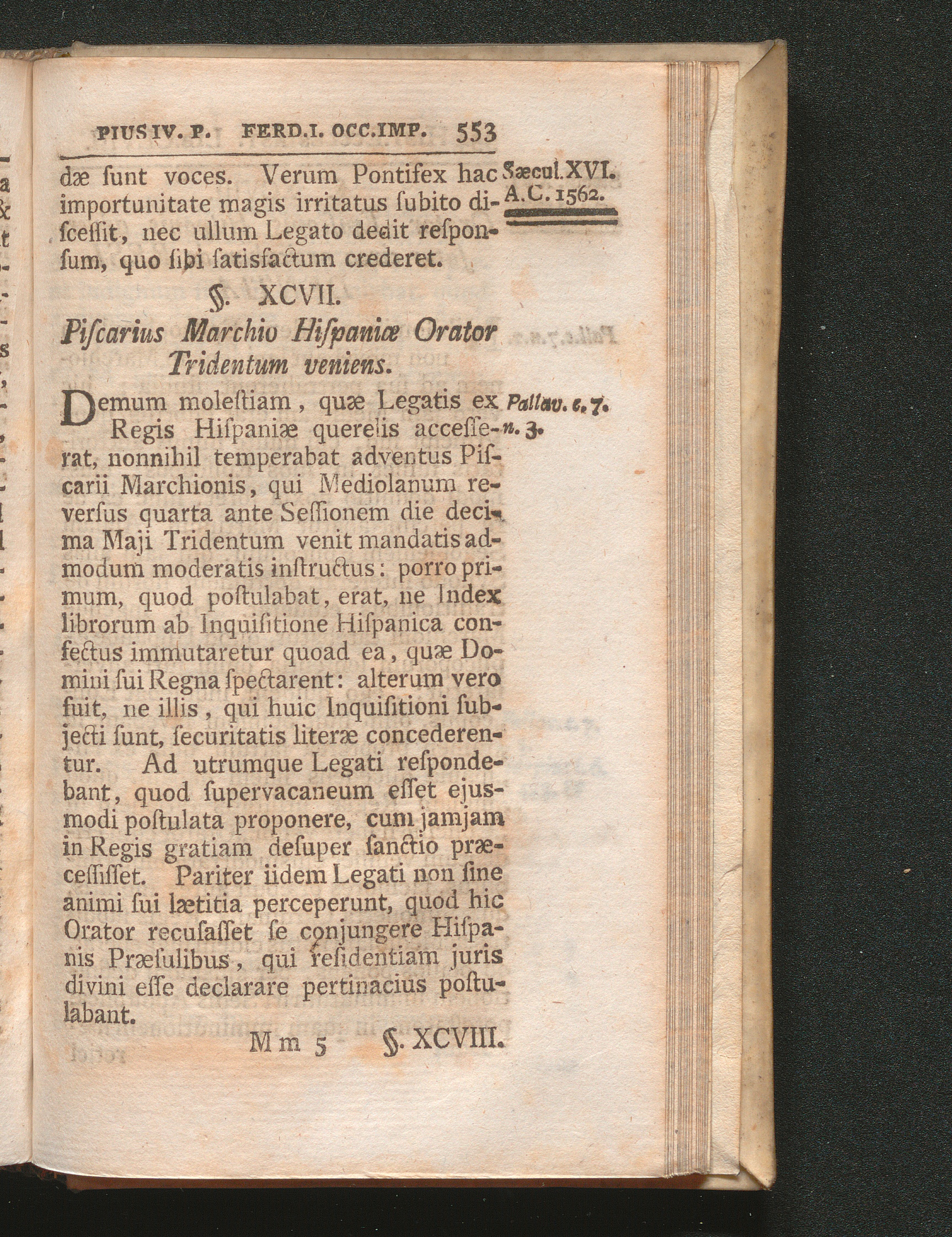 §. 97. Piscarius Marchio Hispaniæ Orator Tridentium veniens.