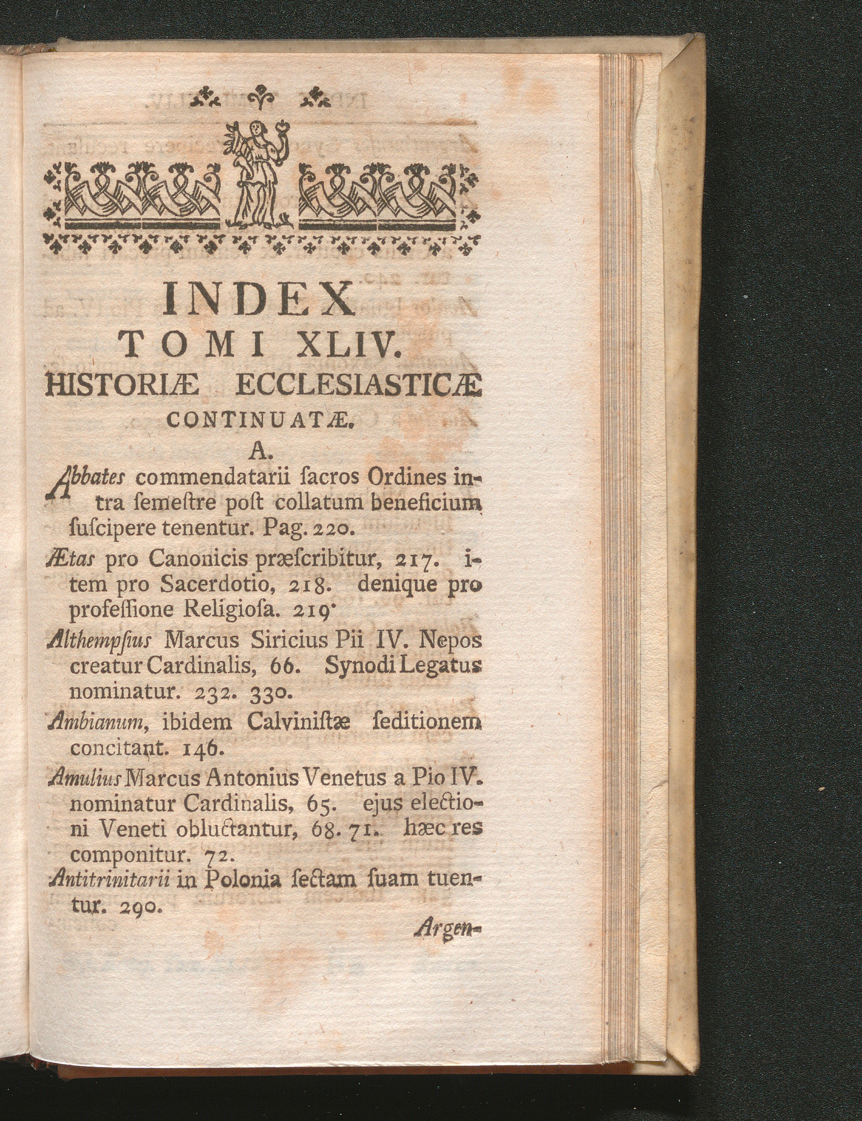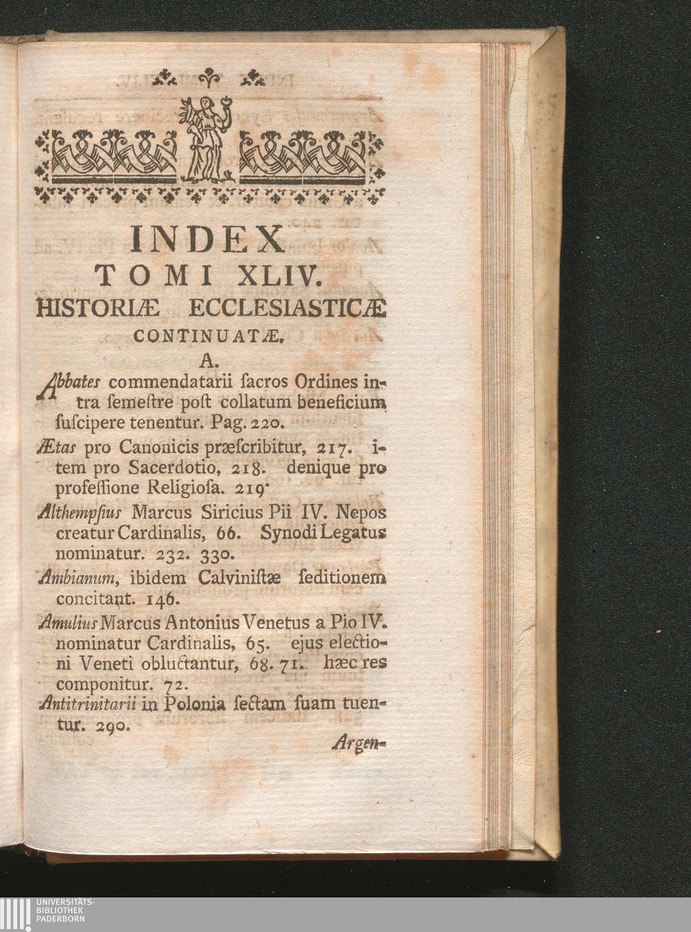 Index Tomi XLIV. Historiæ Ecclesiasticæ continuatæ.