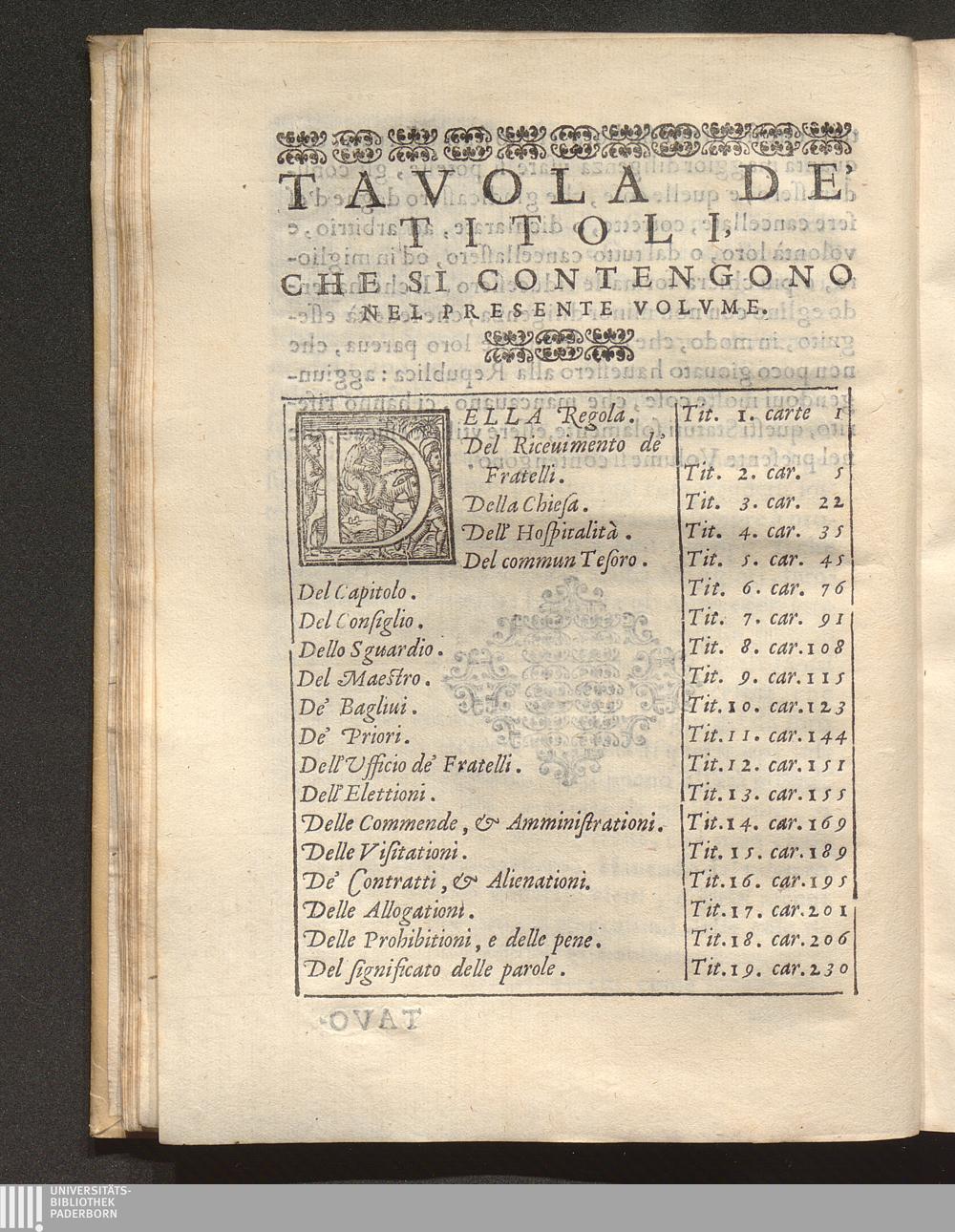 Tavola De' Titoli, Che Si Contengono Nel Presente Volvme.