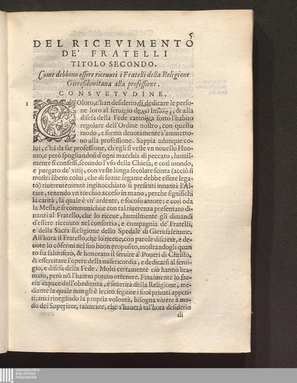 Del Riceuimento de' Fratelli. Tit. 2.