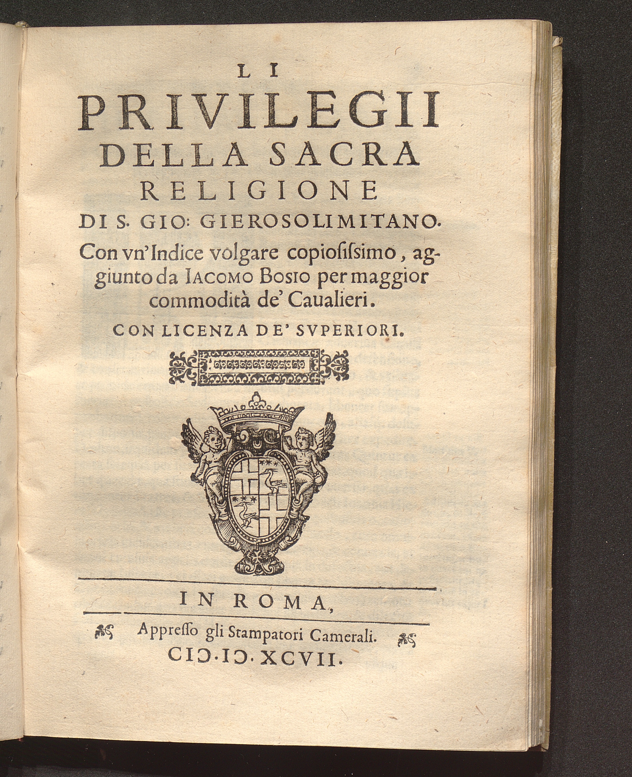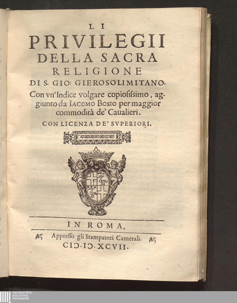 Li Privilegii Della sacra Religione Di S. Gio: Gierosolimitano.