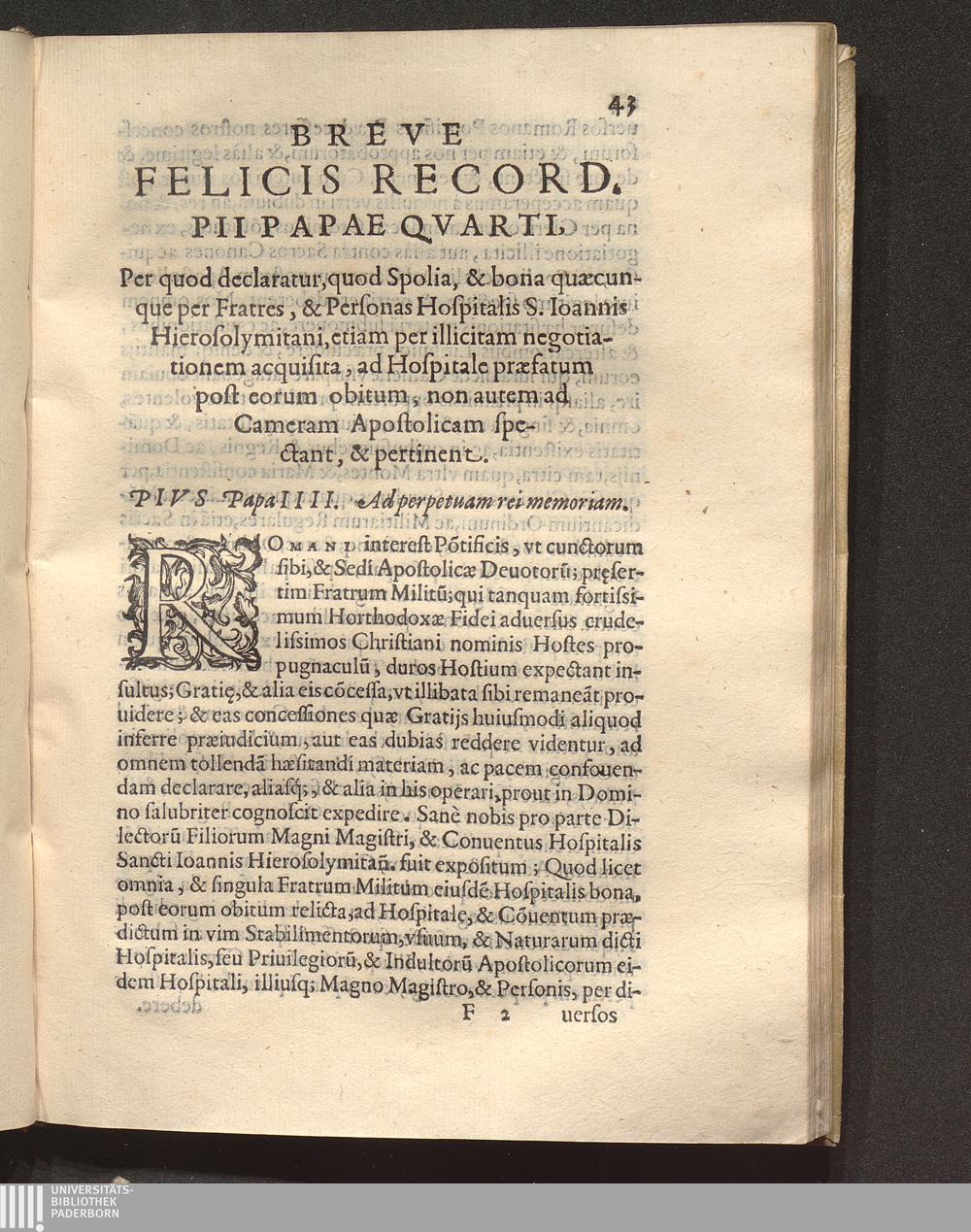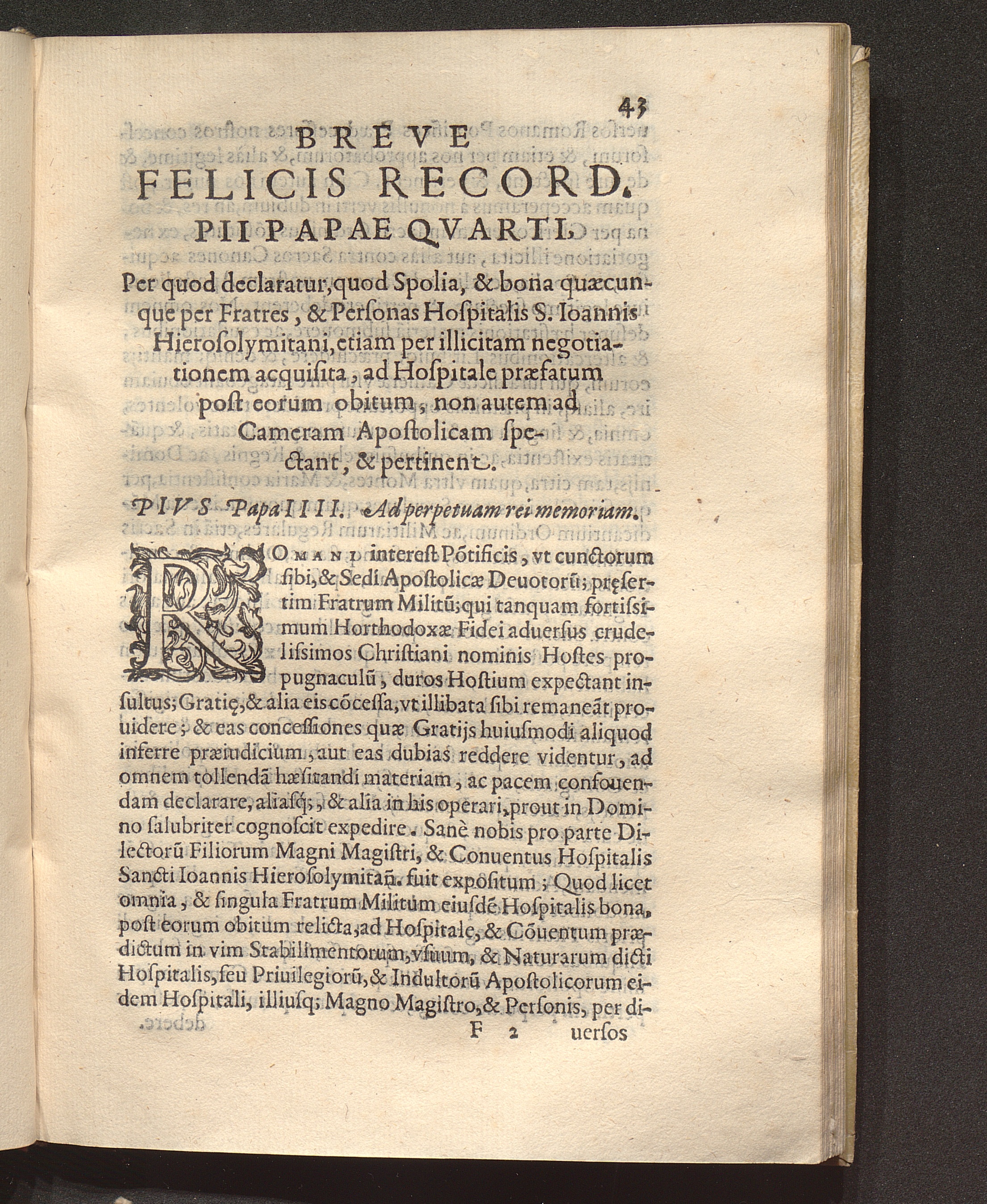 Breve Felicis Record. Pii Papae Qvarti, Per quod declaratur, quod Spolia, & bona[...]