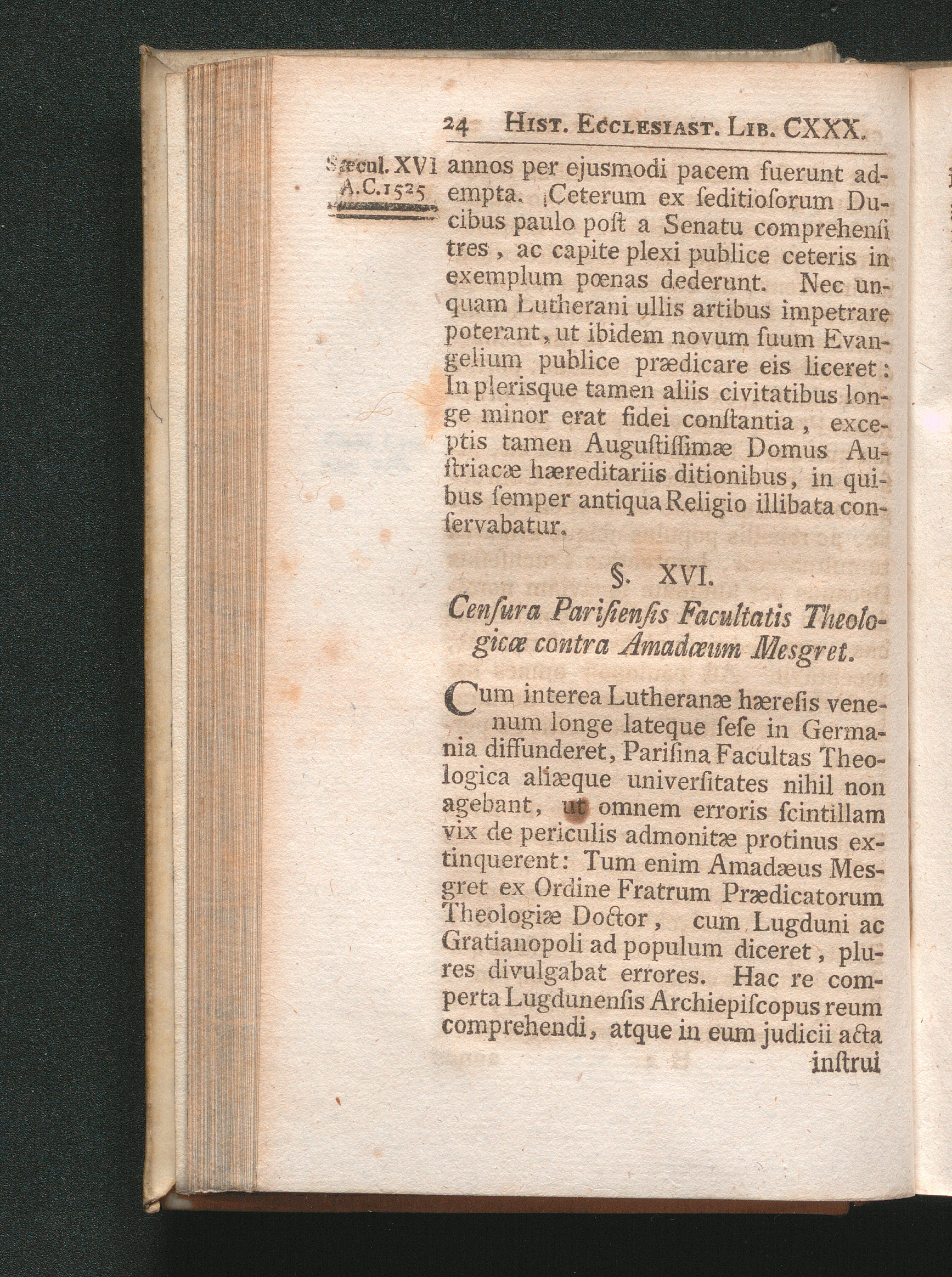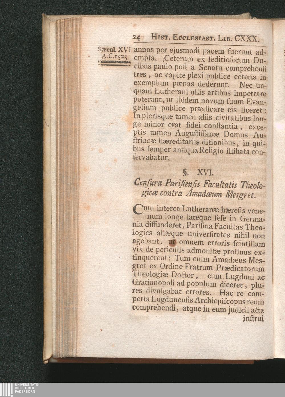 §. 16. Censura Parisiensis Facultatis Theologicæ contra Amadeæum Mesgret.