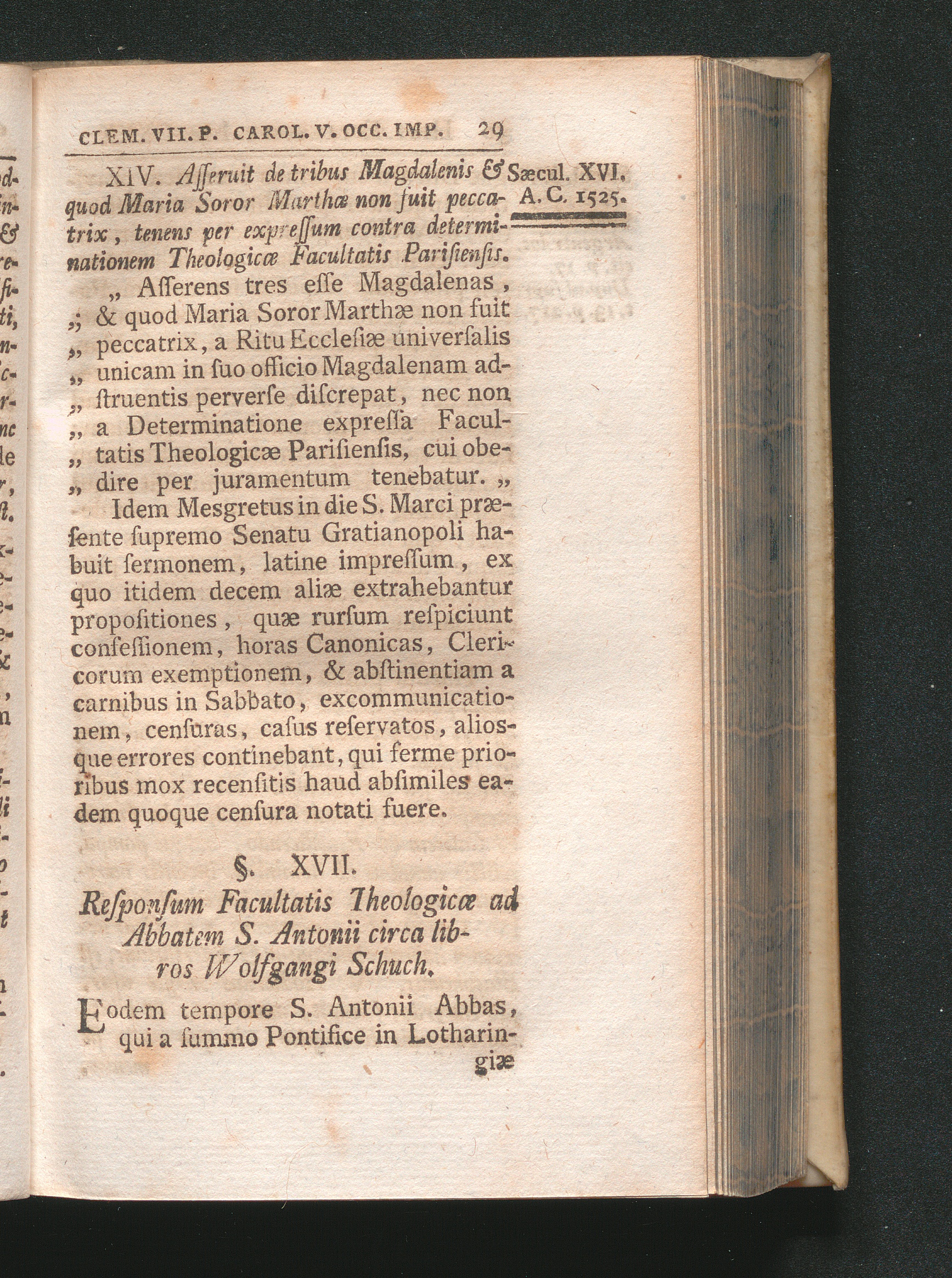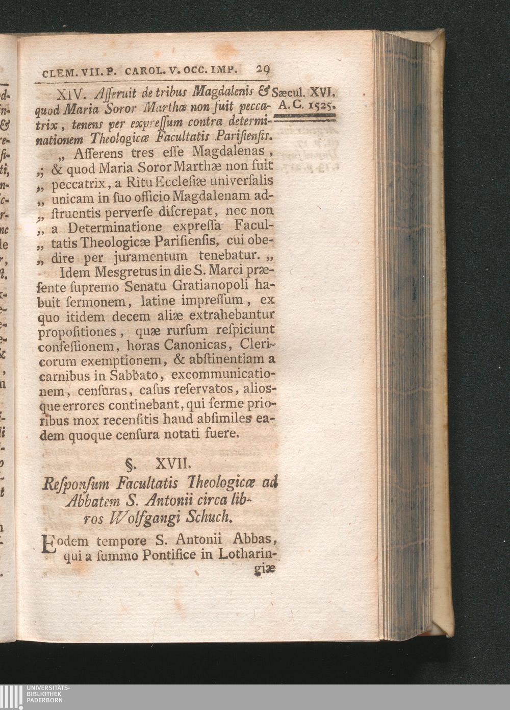 §. 17. Responsum Facultatis Theologicæ ad Abbatem S. Antonii circa libros Wolfgangi[...]