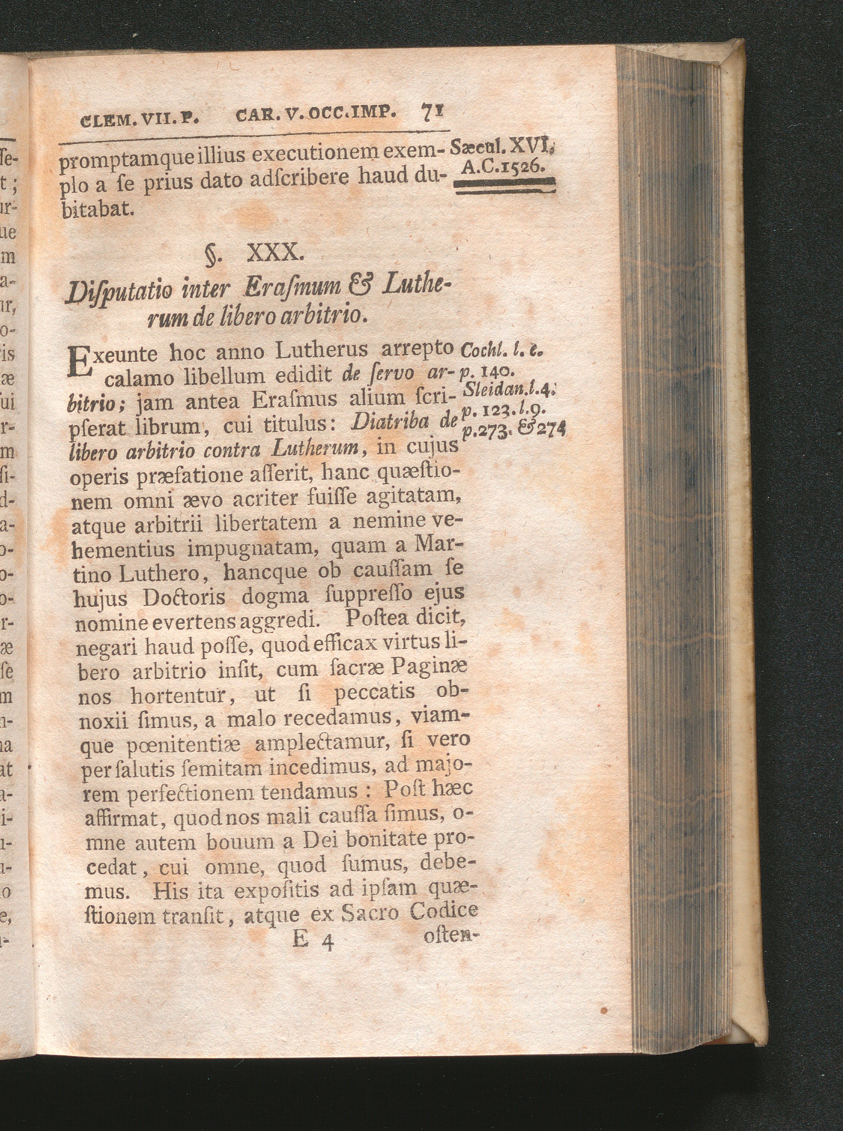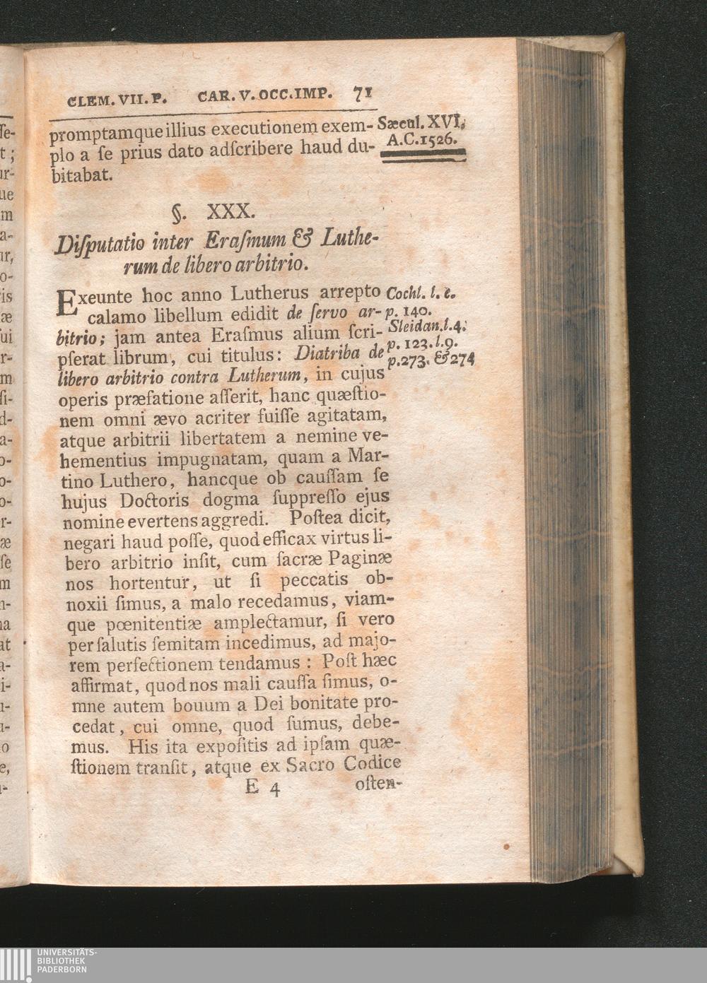 §. 30. Disputatio inter Erasmum & Lutherum de Libero arbitrio.