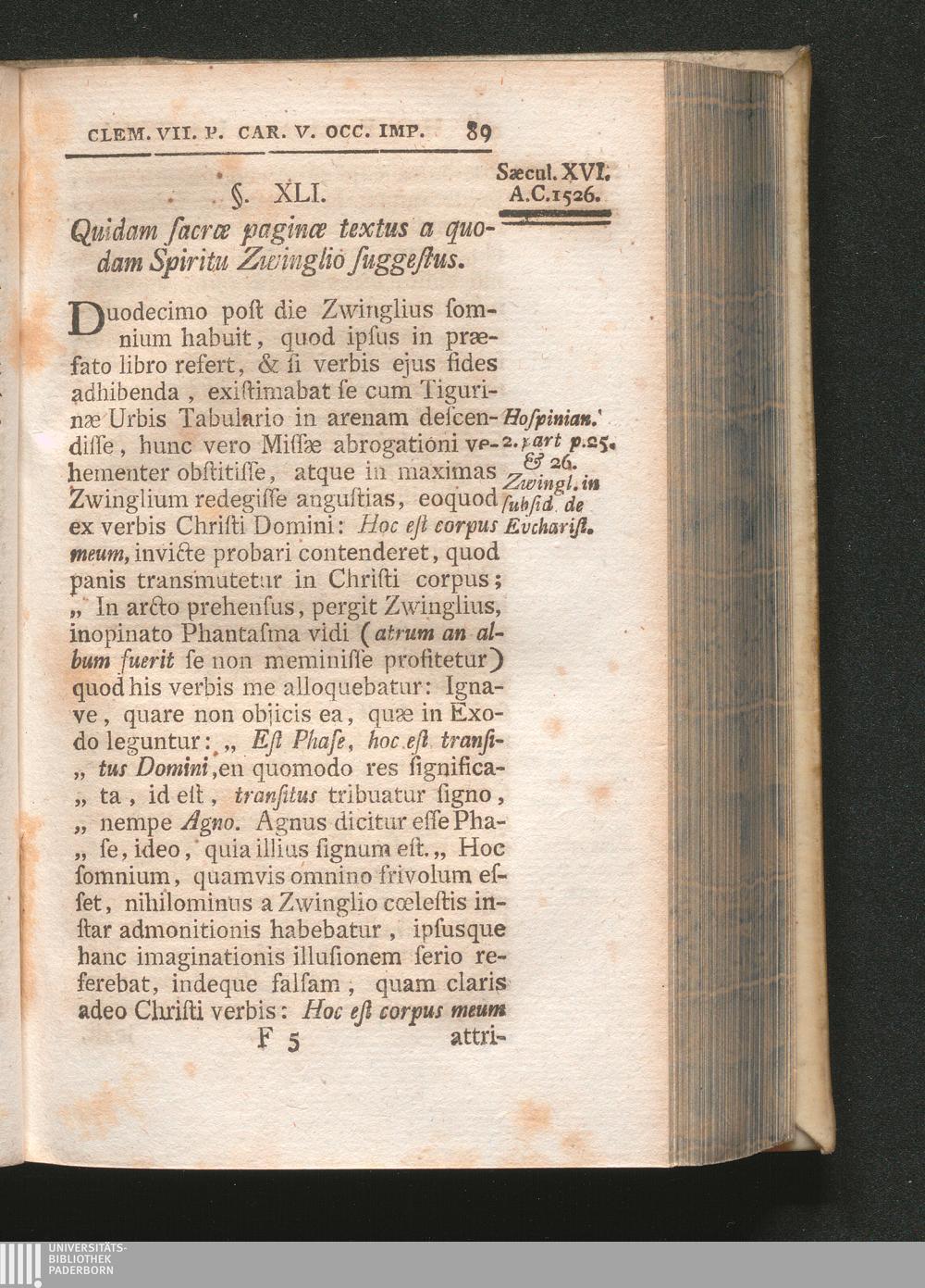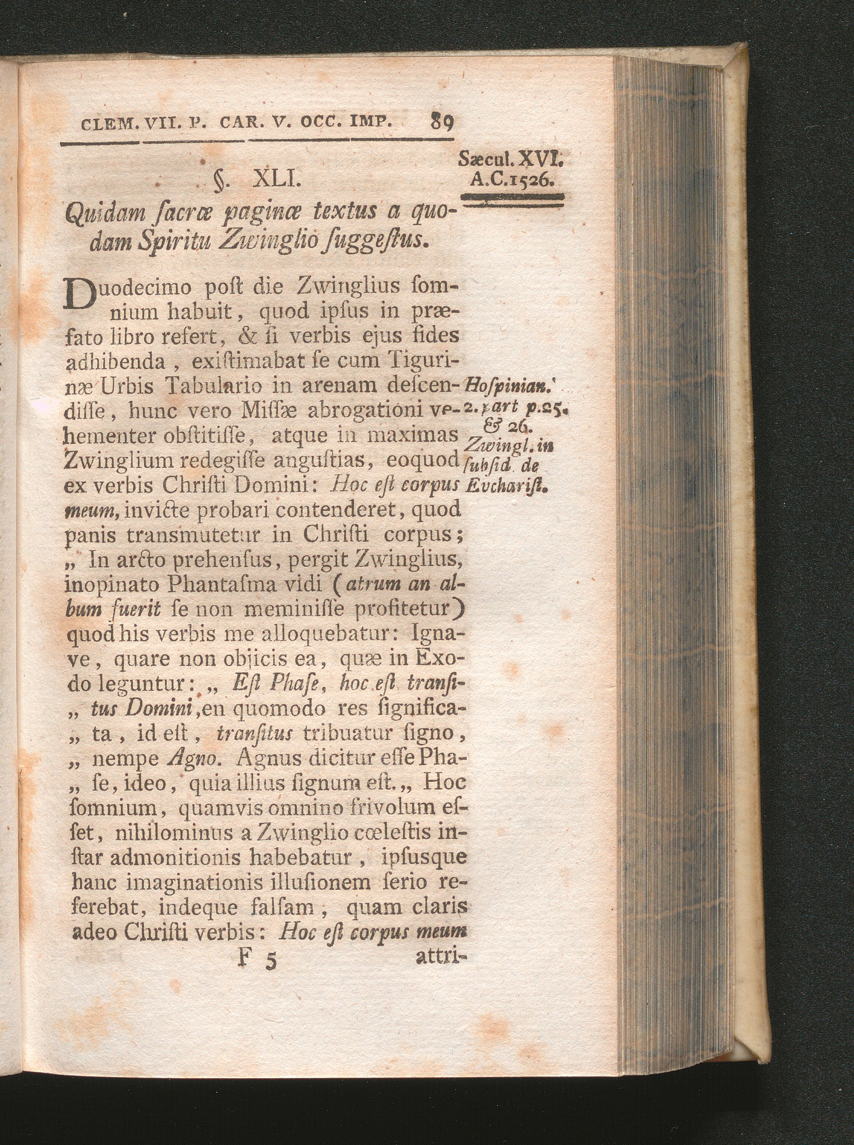 §. 41. Quidam sacræ paginæ textus a quodam Spiritu Zwinglio suggestus.