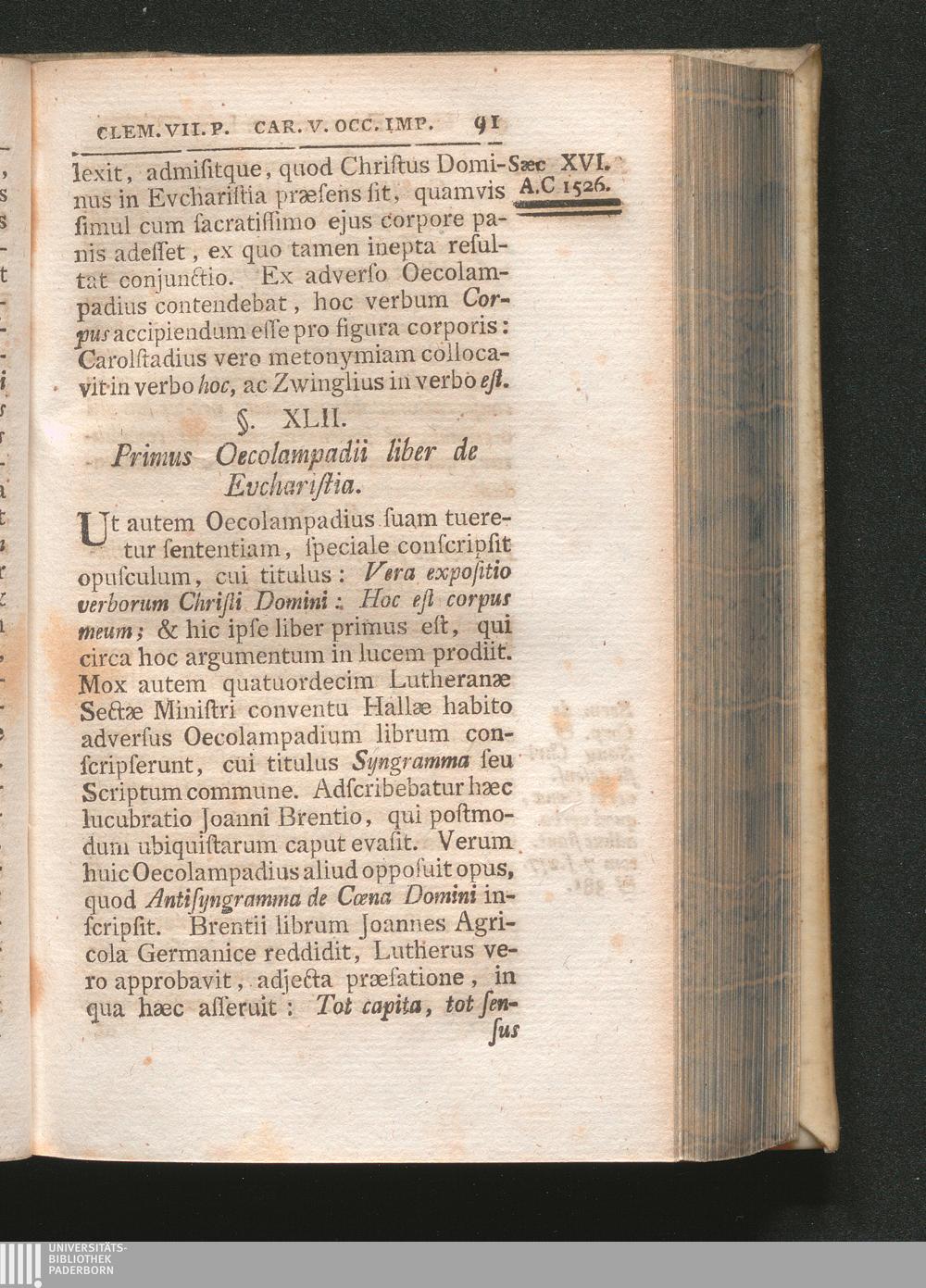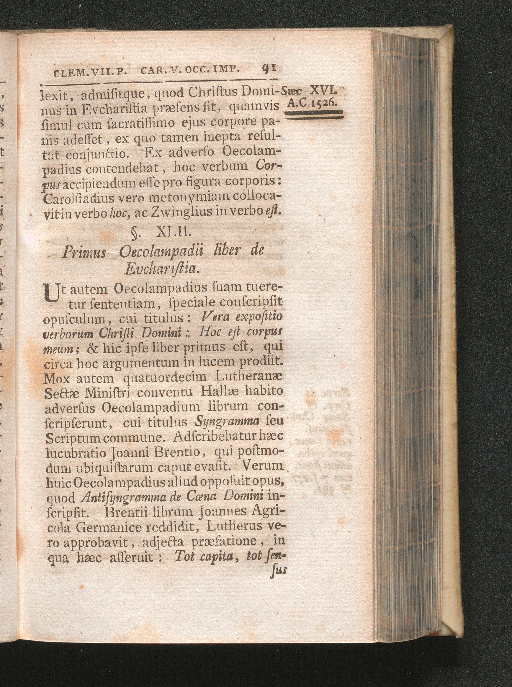 §. 42. Primus Oecolampadii liber de Evcharistia.