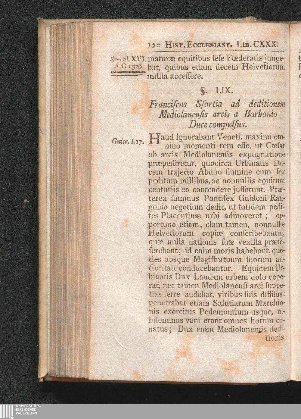 §. 59. Franciscus Sfortia ad deditionem Mediolanensis arcis a Borbonio Duce comp[...]