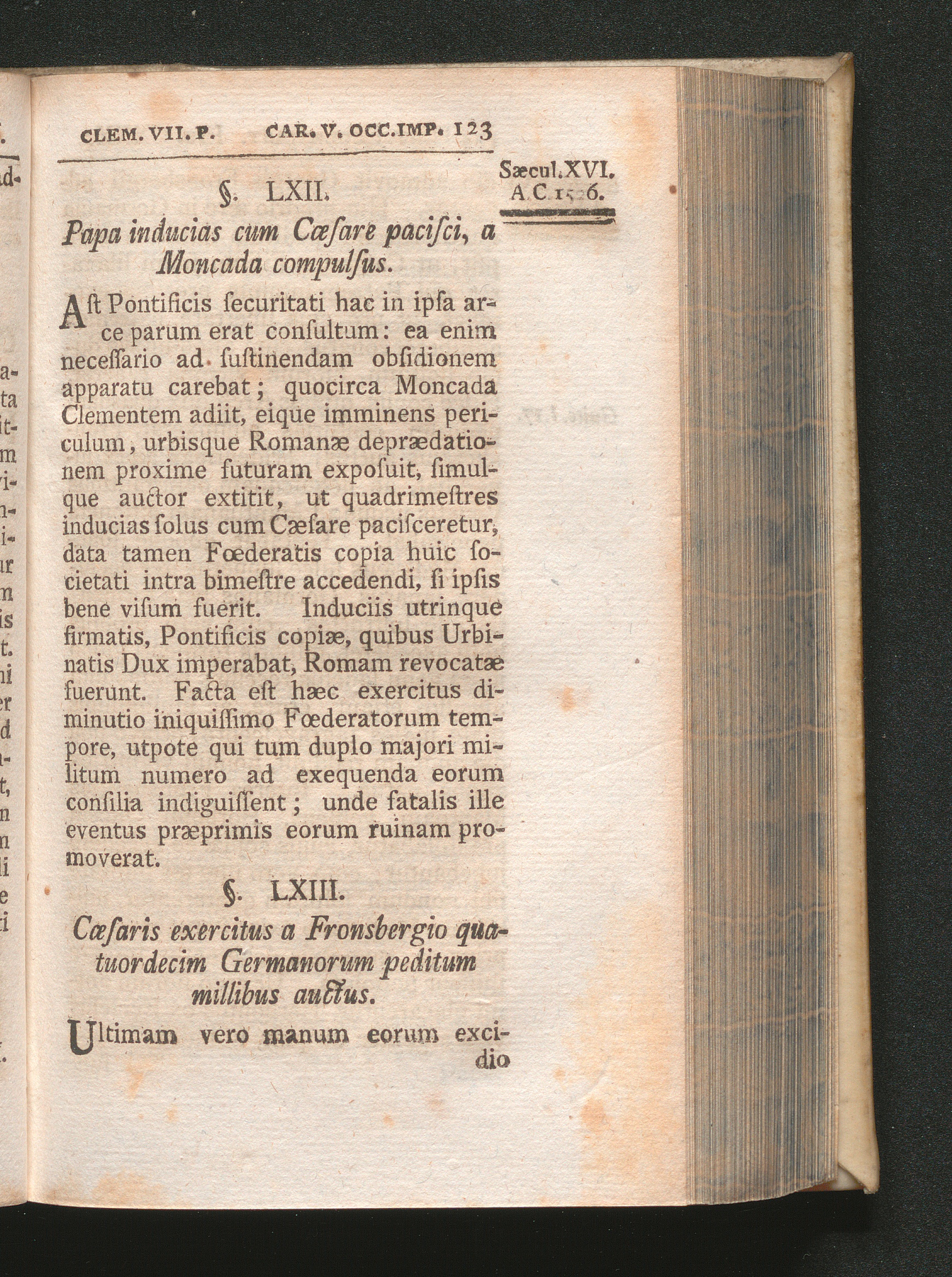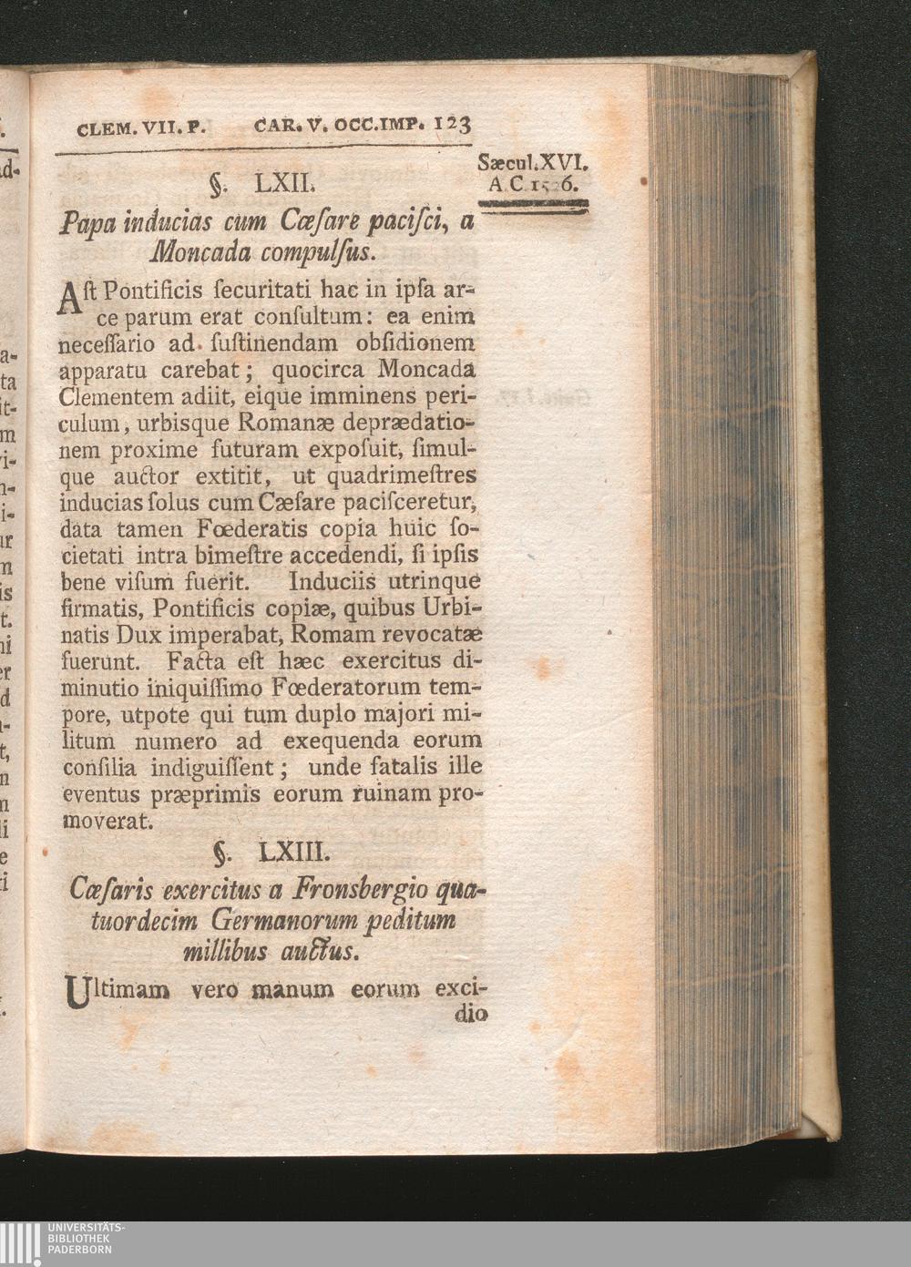 §. 63. Cæsaris exercitus a Fronsbergio quatuordecim Germanorum peditum millibus [...]