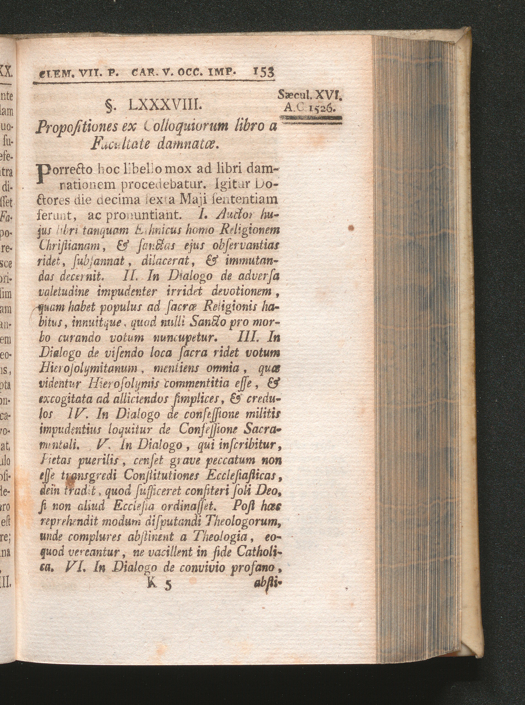 §. 88. Propositiones ex Colloquiorum libro a Facultate damnatæ.