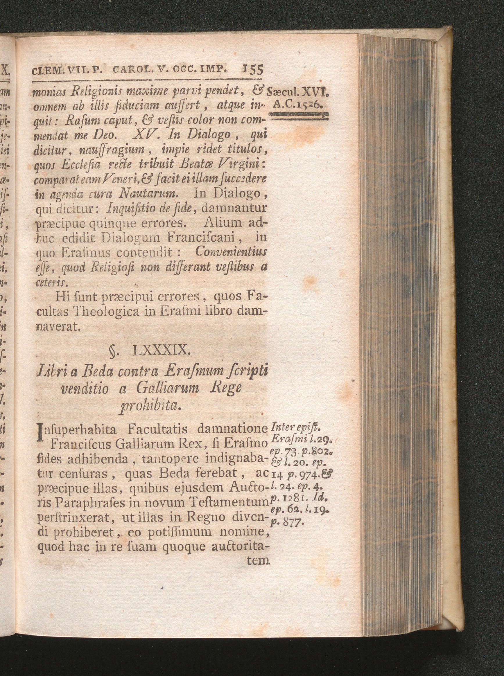 §. 89. Libri a Beda contra Erasmum scripti venditio a Galliarum Rege prohibita.