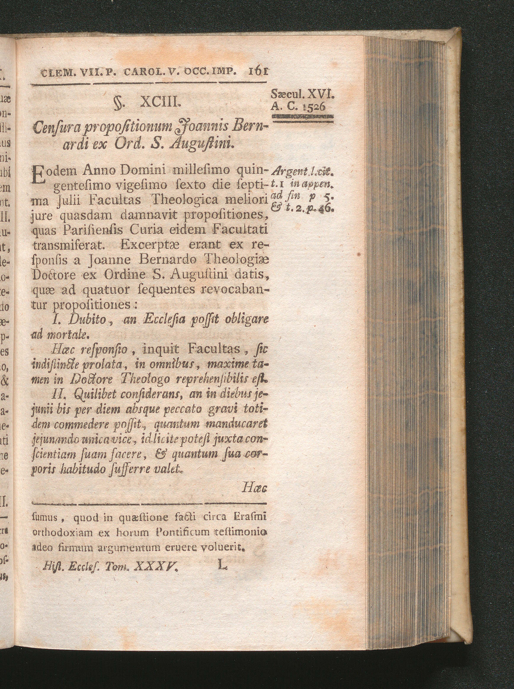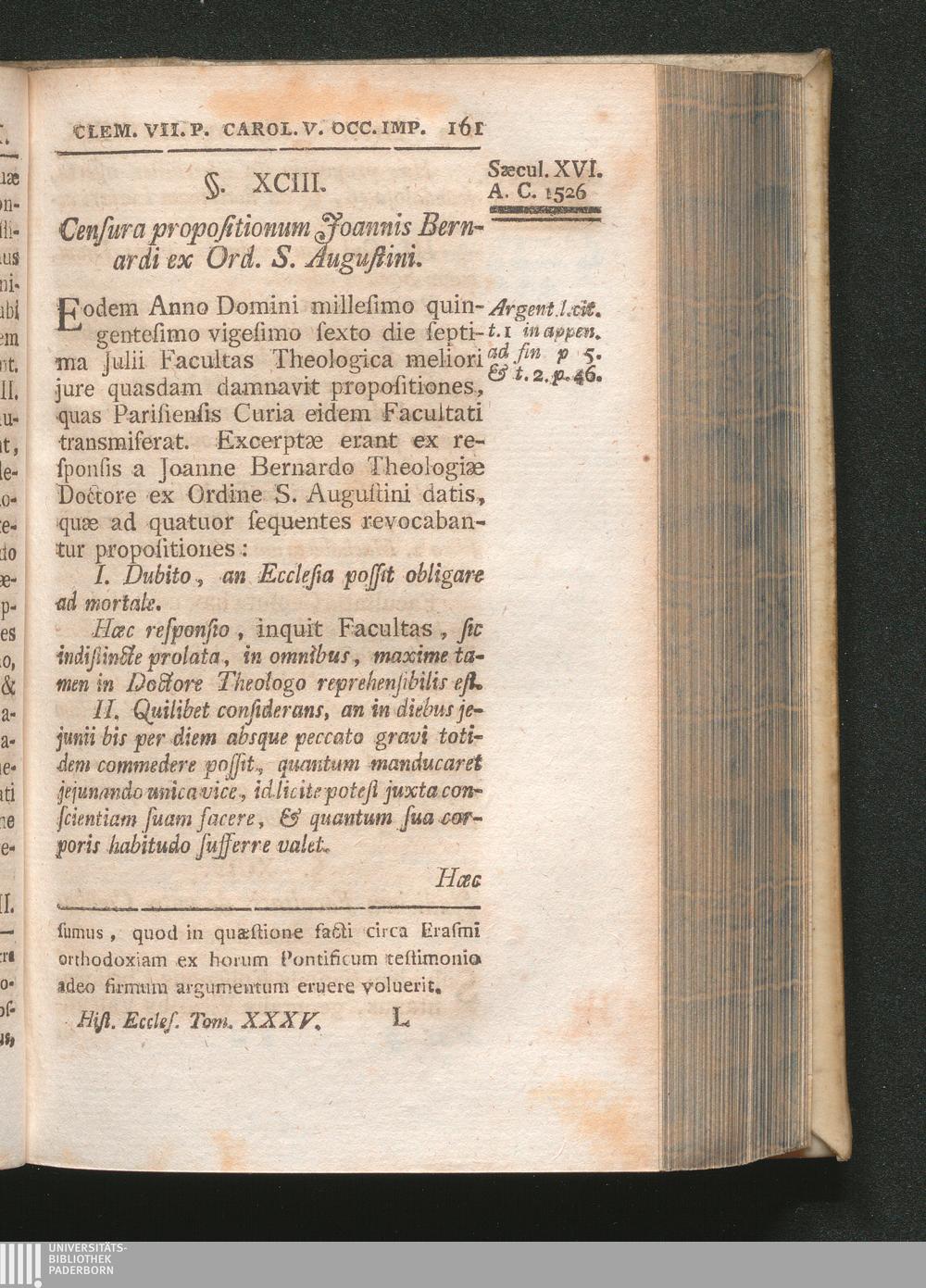 §. 93. Censura propositionum Joannis Bernardi ex Ord. S. Augustini.