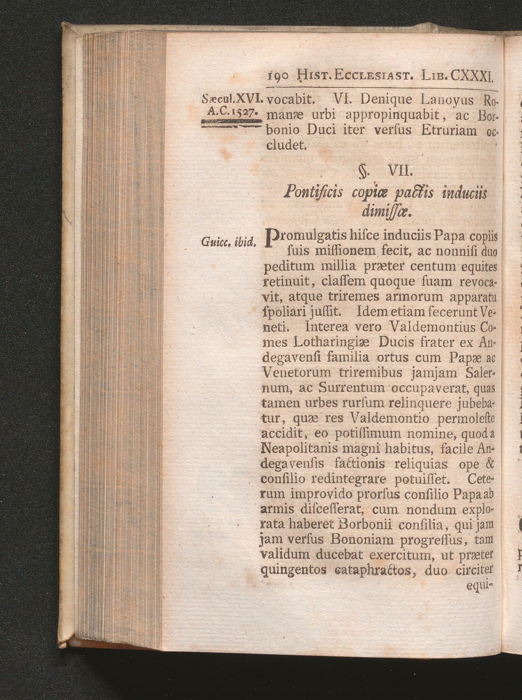 §. 7. Pontificis copiæ pactis induciis dimissæ.