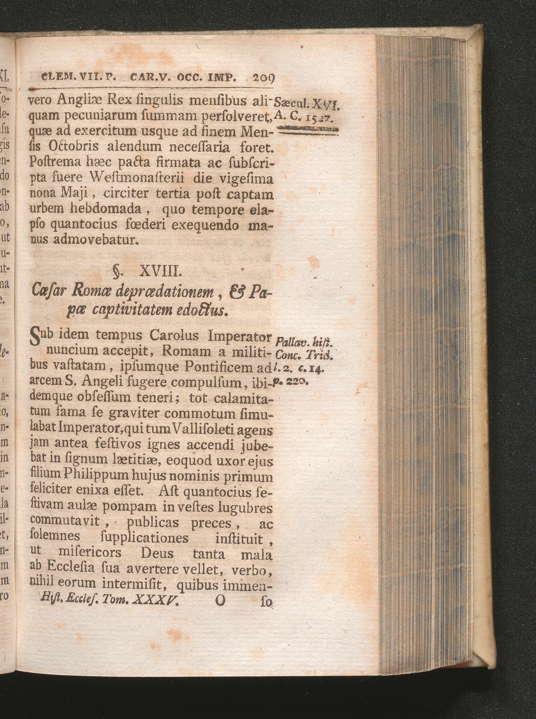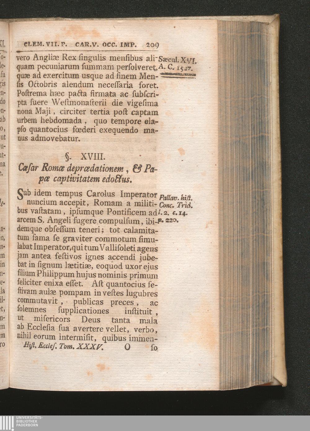 §. 18. Cæsar Romæ deprædationem, & Papæ captivitatem edoctus.