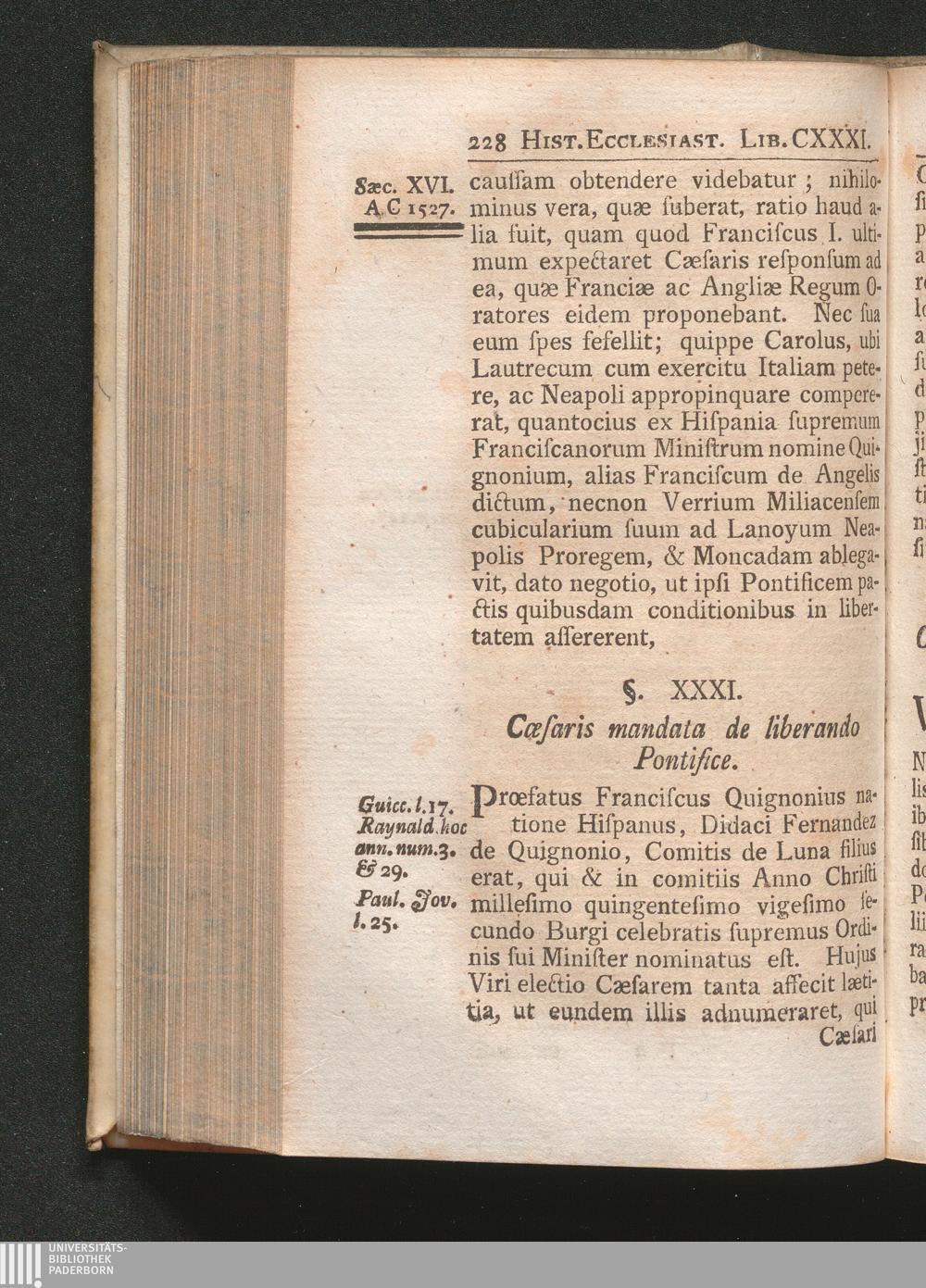 §. 31. Cæsaris mandata de liberando Pontifice.
