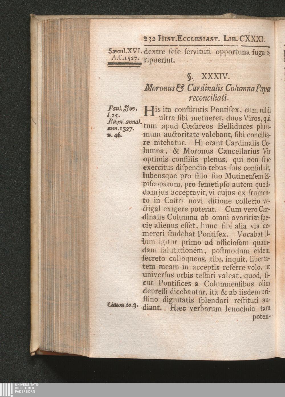 §. 34. Moronus & Cardinalis Columna Papæ reconciliati.