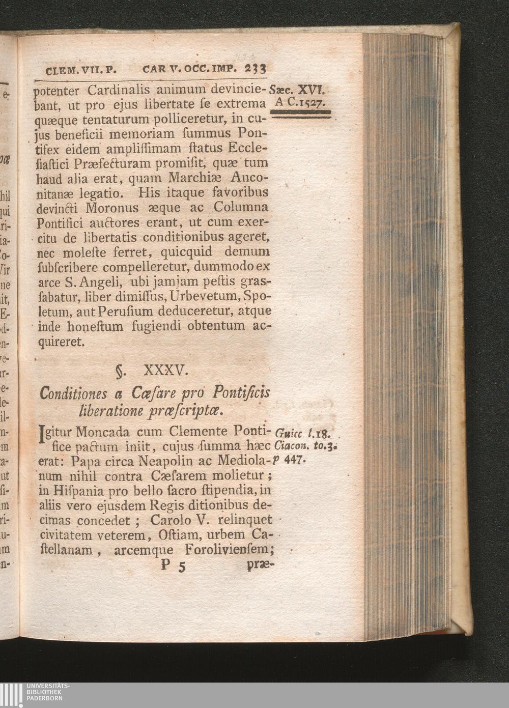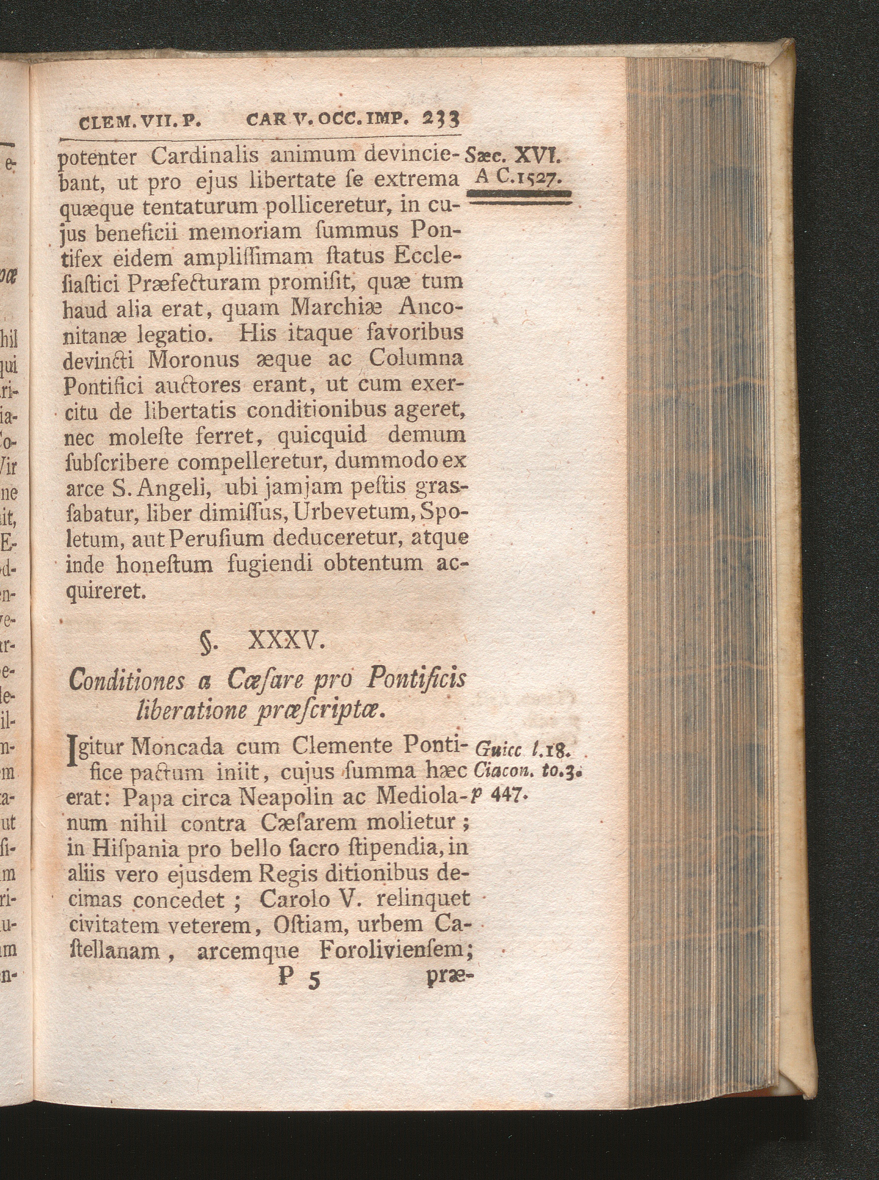 §. 35. Conditiones a Cæsare pro Pontificis liberatione præscriptæ.