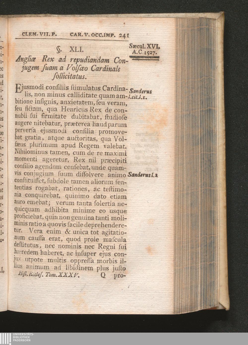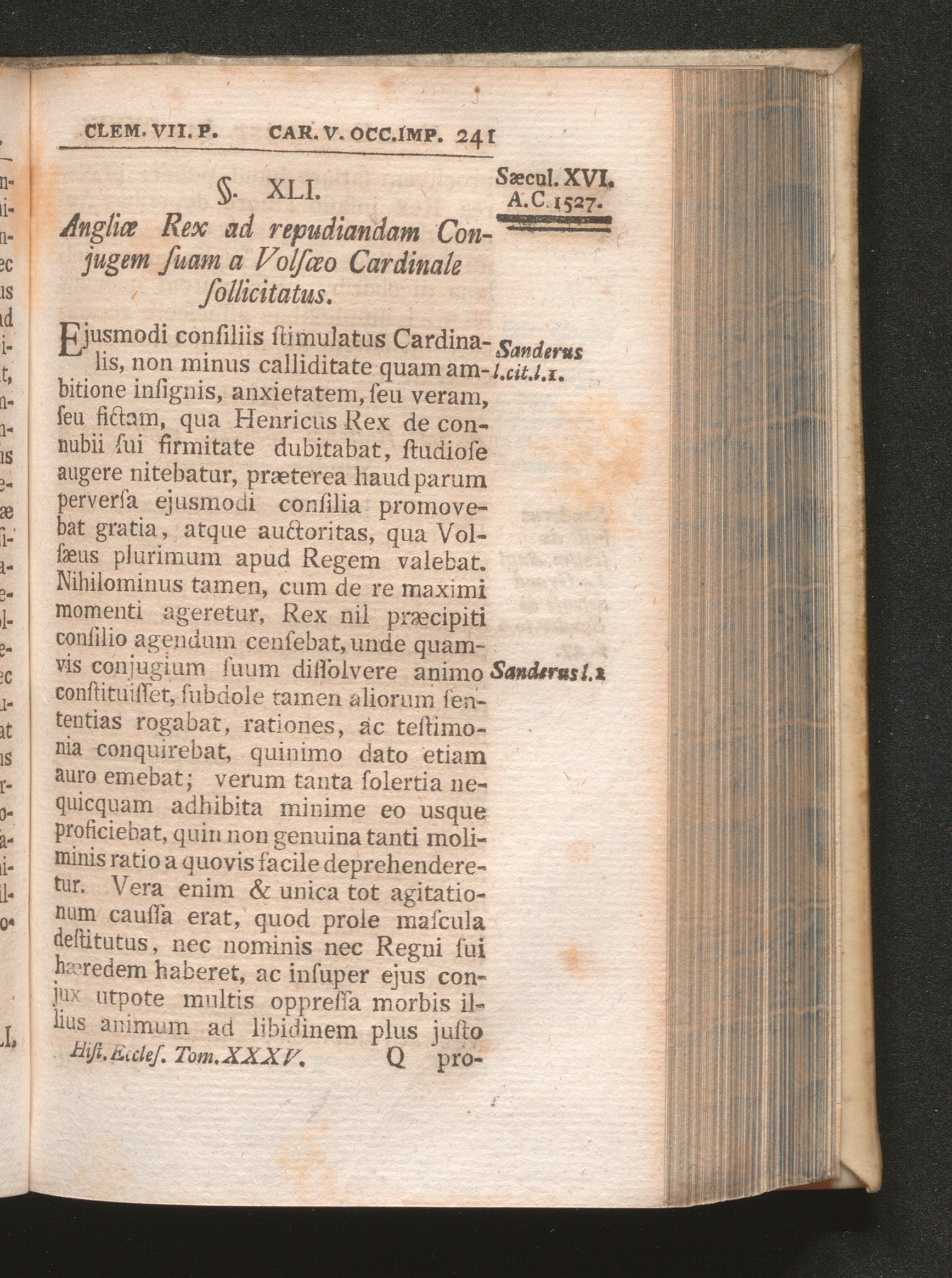 §. 41. Angliæ Rex ad repudiandam Conjugem suam a Volsæo Cardinale sollicitatus.