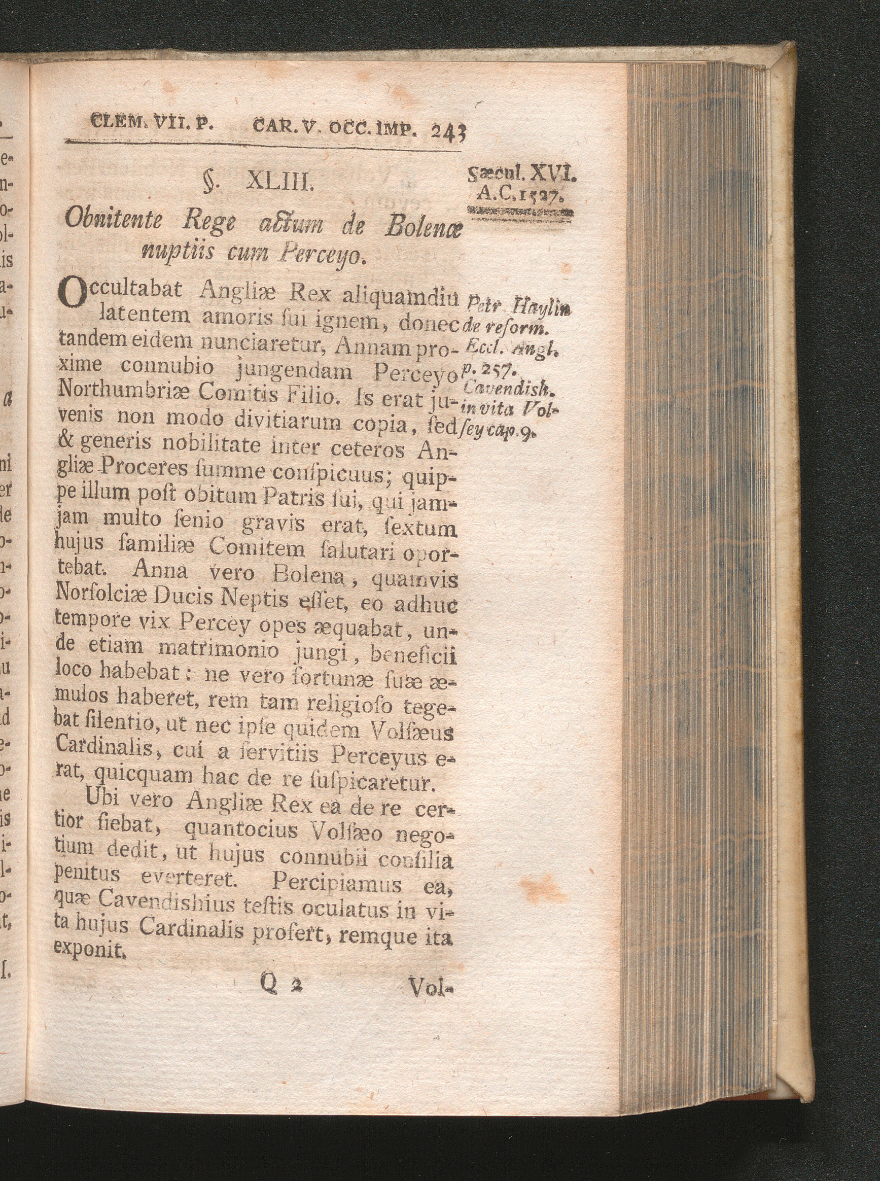 §. 43. Obnitente Rege actum de Bollenæ nuptiis cum Perceyo.
