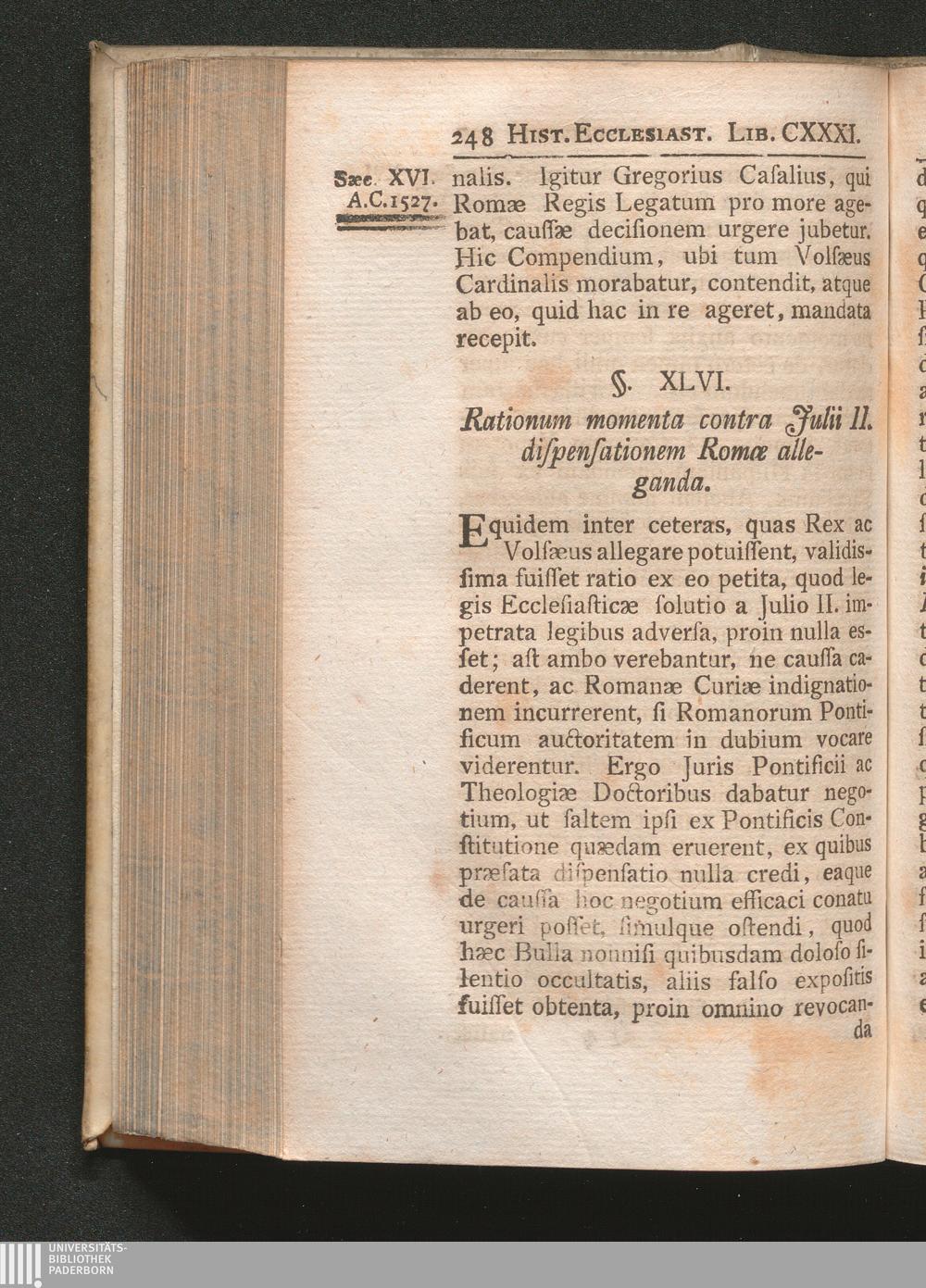 §. 46. Rationum momenta contra Julii II. dispensationem Romæ alleganda.