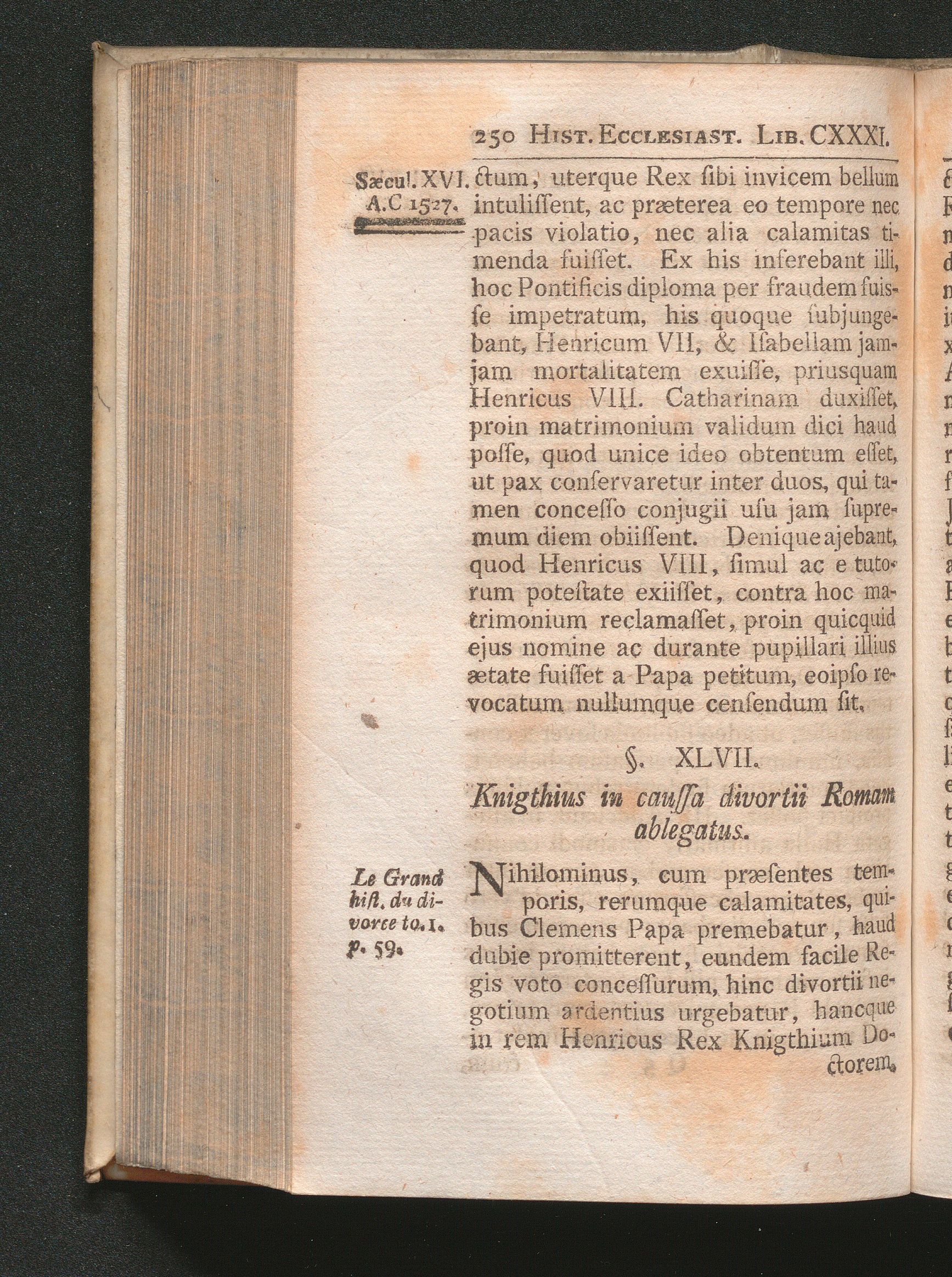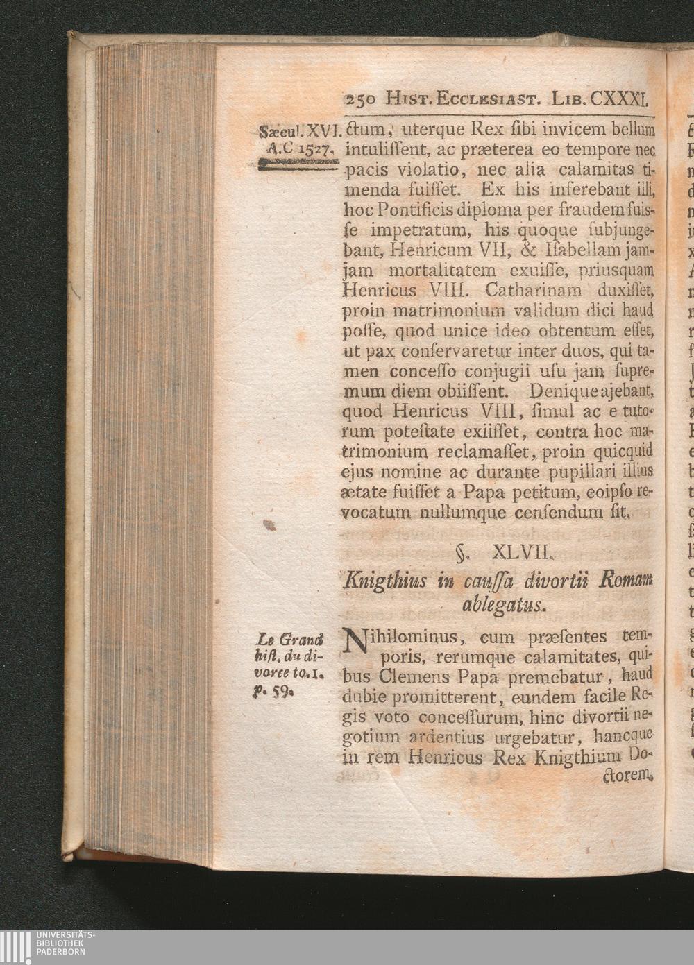 §. 47. Knigthius an caussa divortii Romam ablegatus.