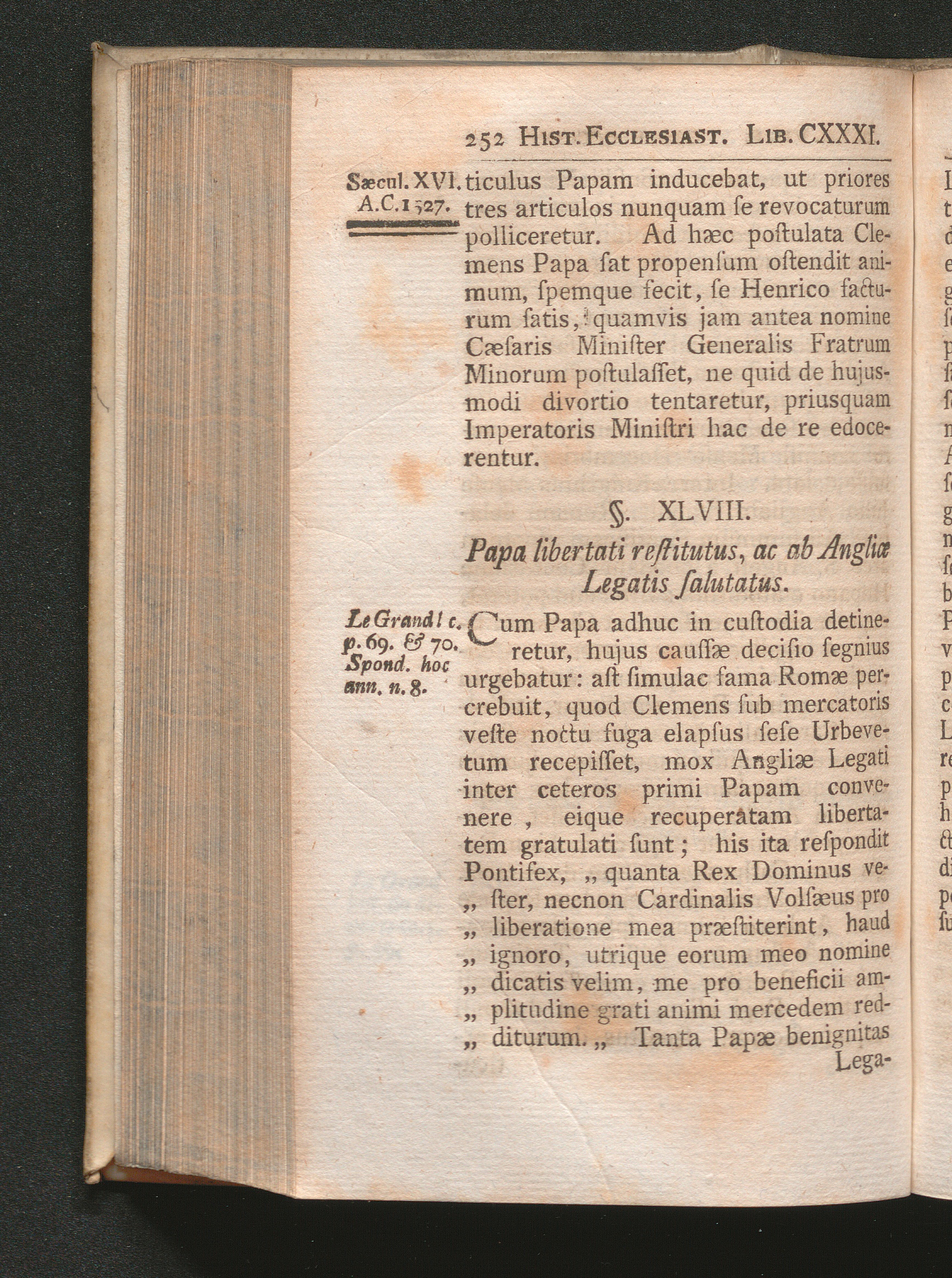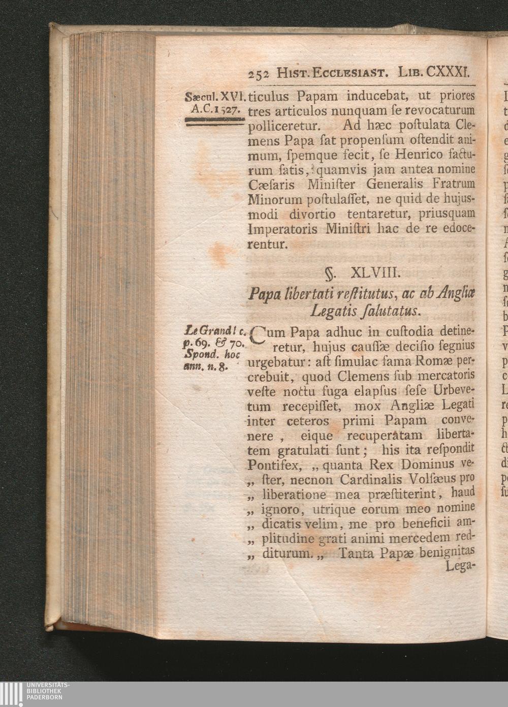 §. 48. Papa libertati restitutus, ac ab Angliæ legatis salutatus.
