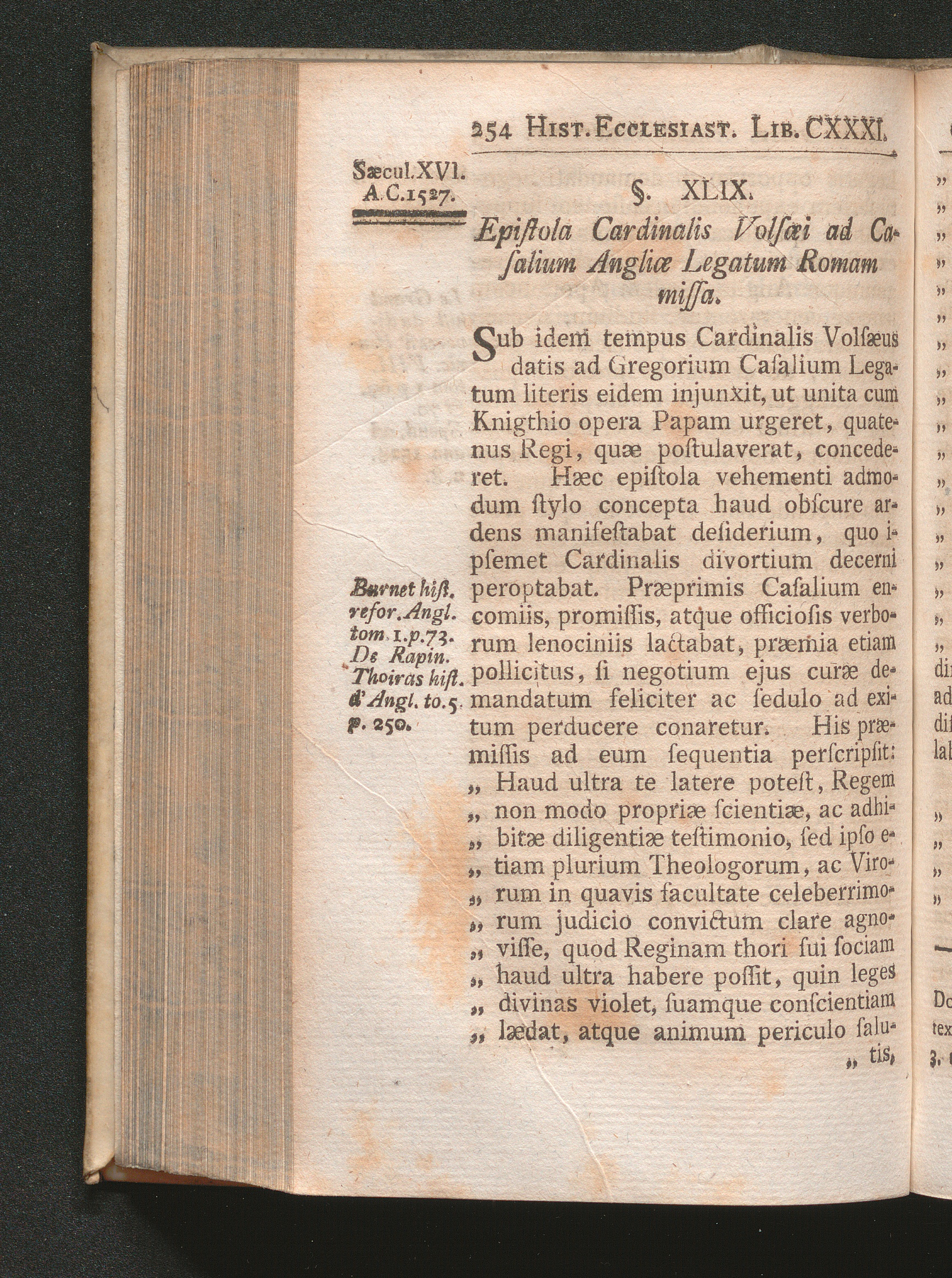 §. 49. Epistola Cardinalis Volsæi ad Casalium Angliæ Legatum Romam missa.