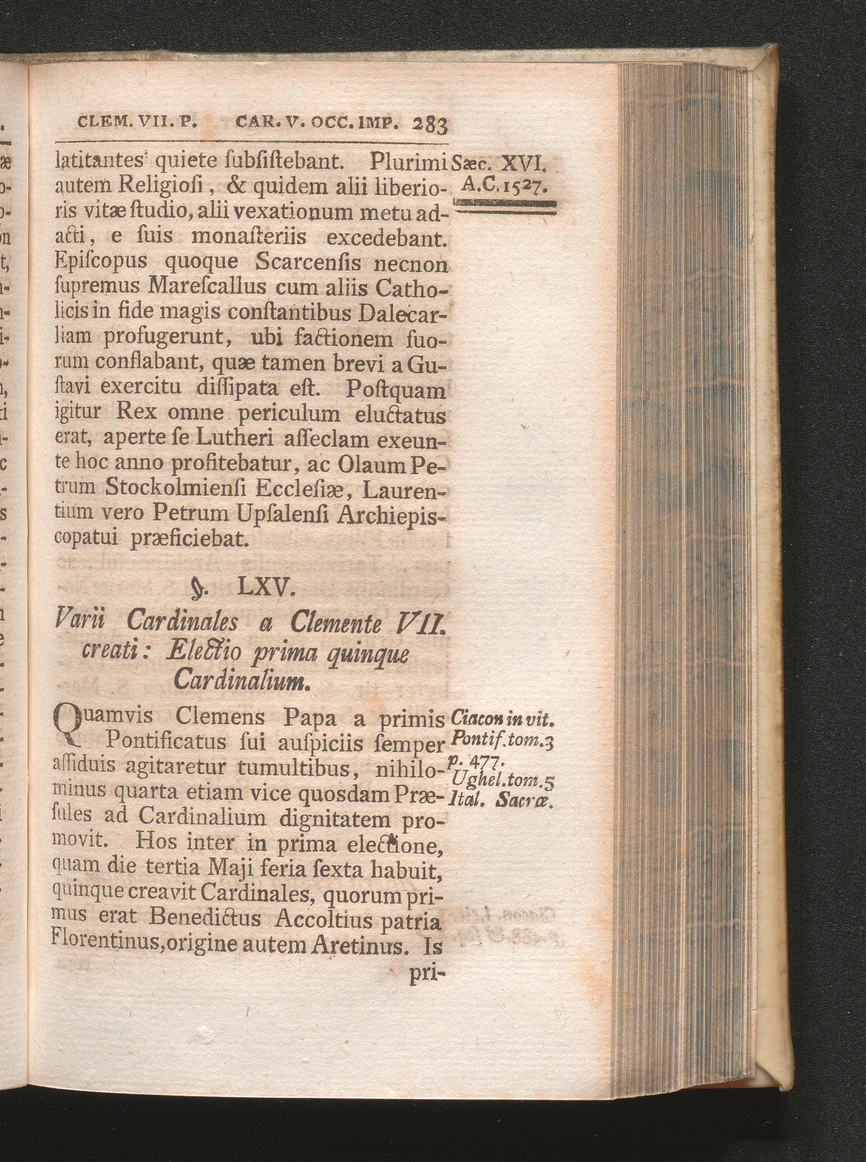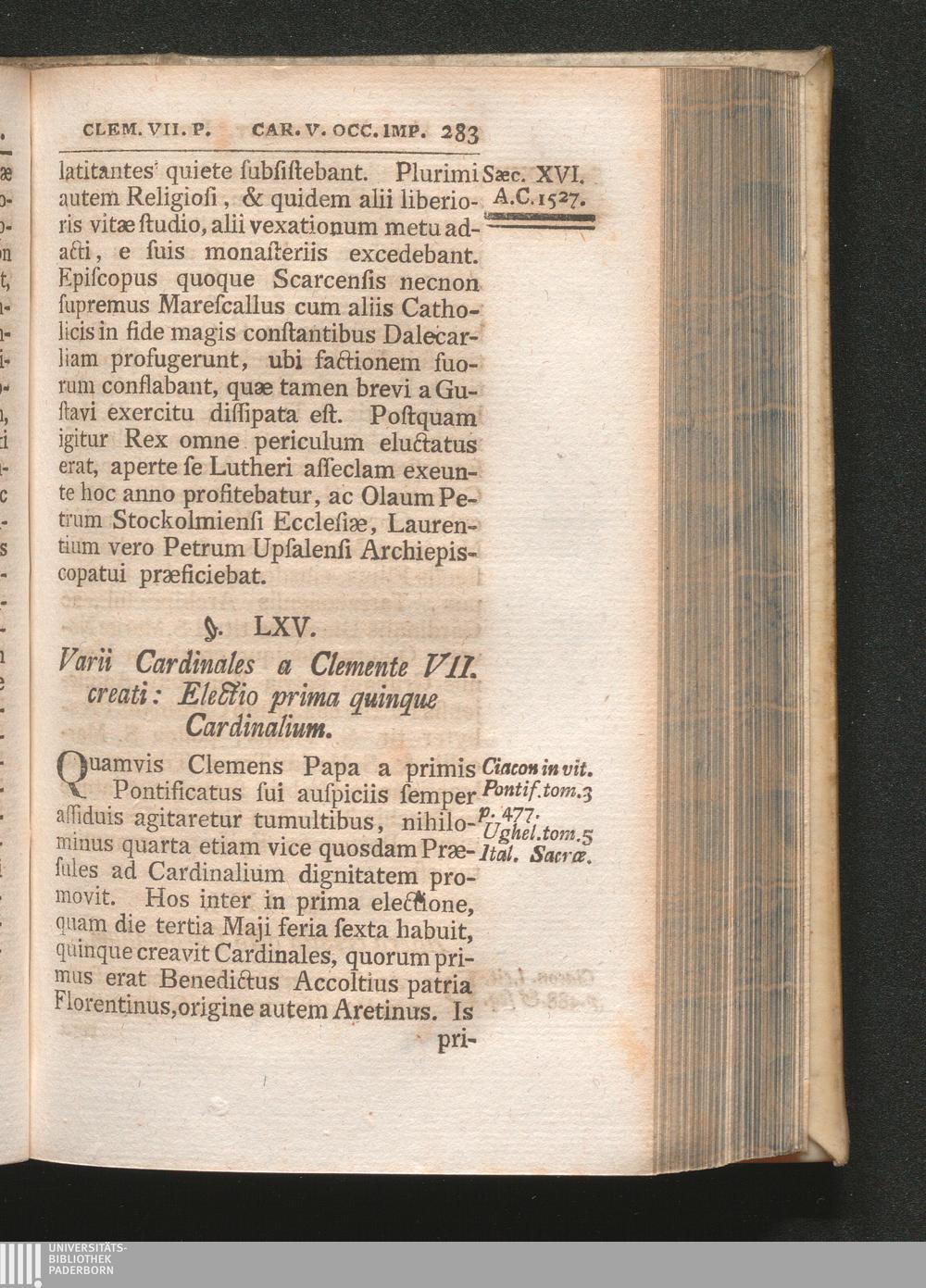 §. 65. Verii Cadinales a Clemente VII. creati: Electio prima quinque Cardinalium[...]