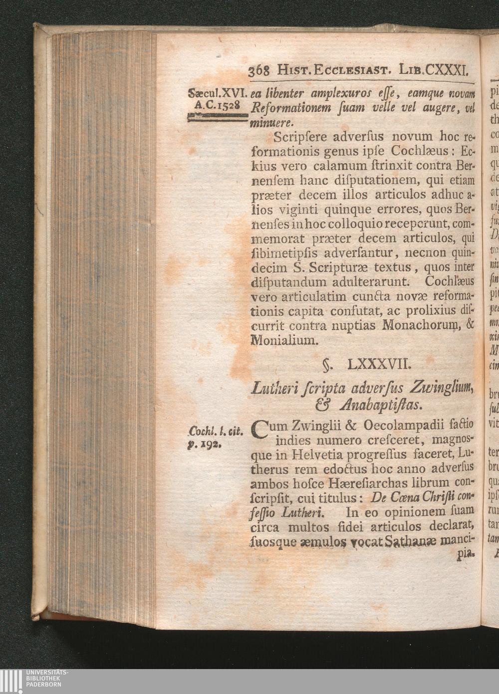 §. 87. Lutheri Scripta adversus Zwinglium & Anabaptistas.