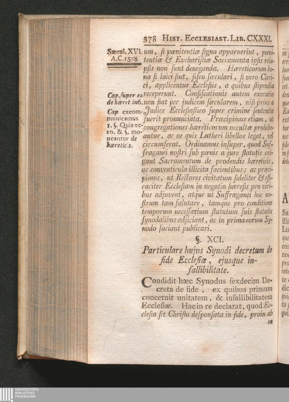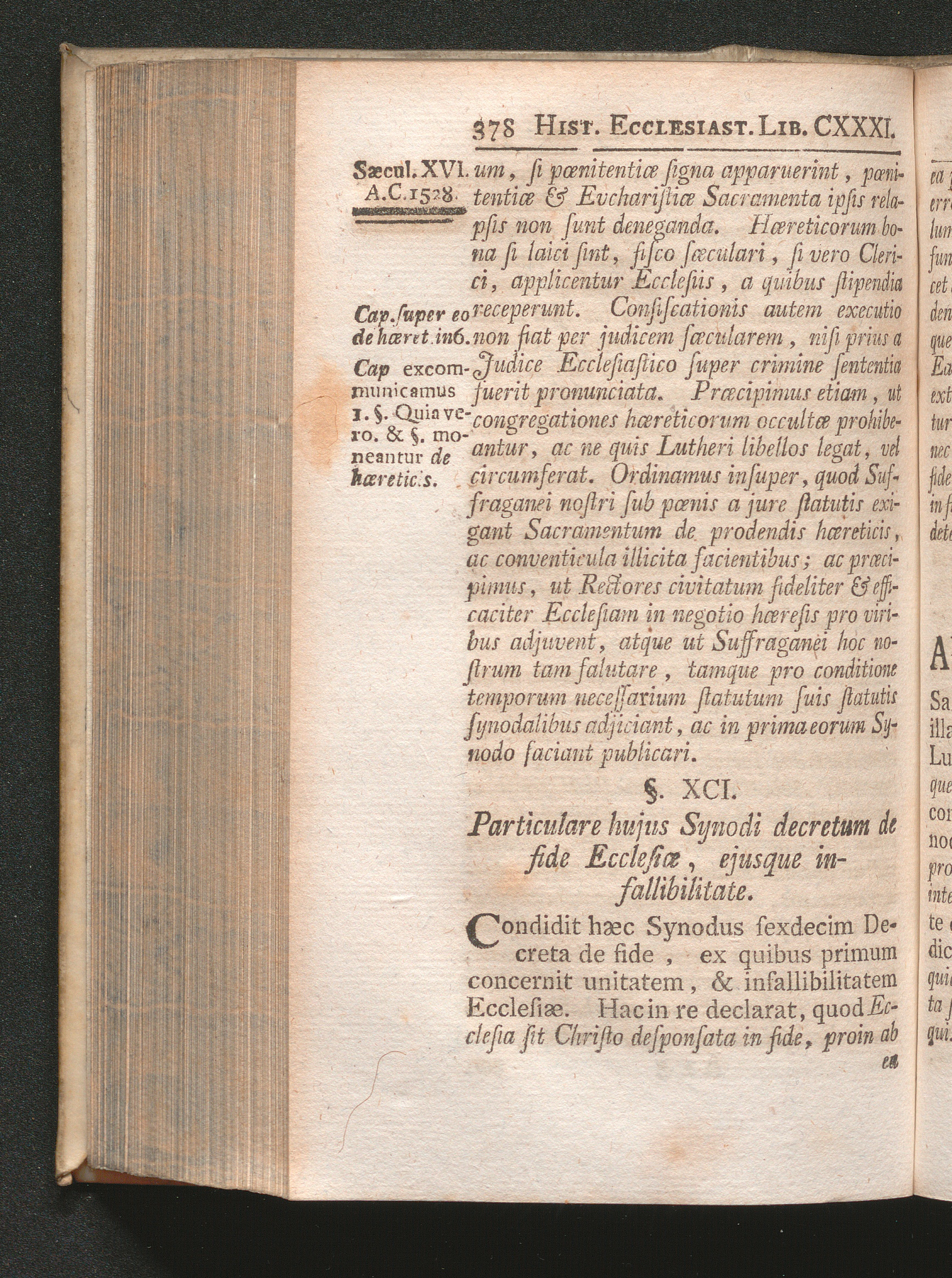 §. 91. Particulare hujus Synodi decretum de Fide Ecclesiæ, ejusque infallibilita[...]