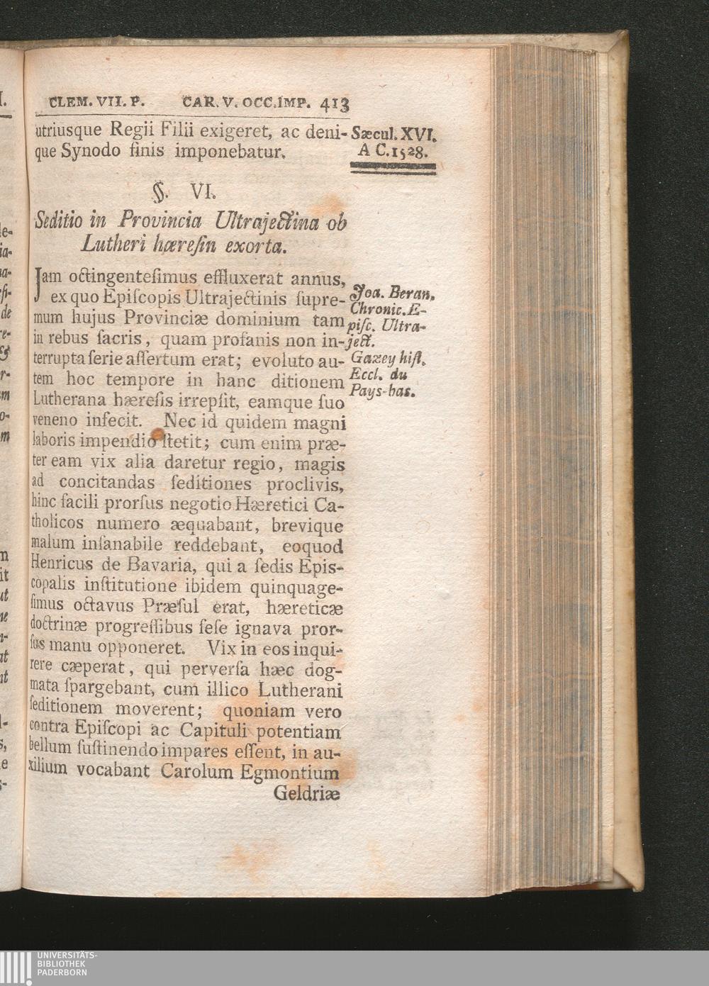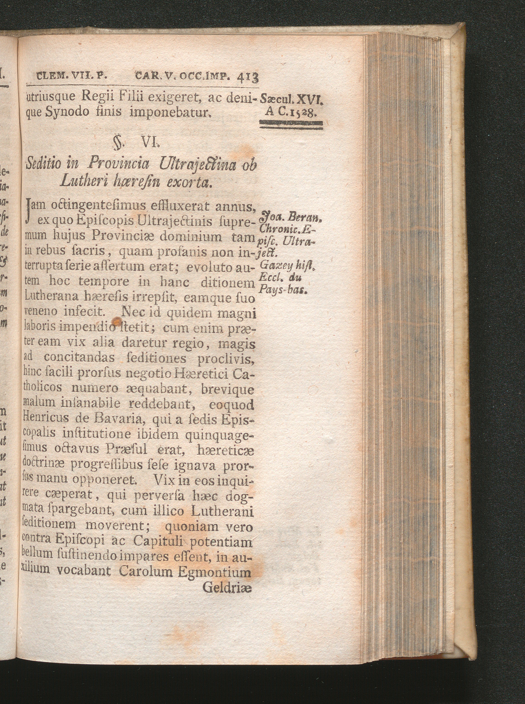 §. 6. Seditio in Provincia Ultrajectina ob Lutheri hæresin exporta.