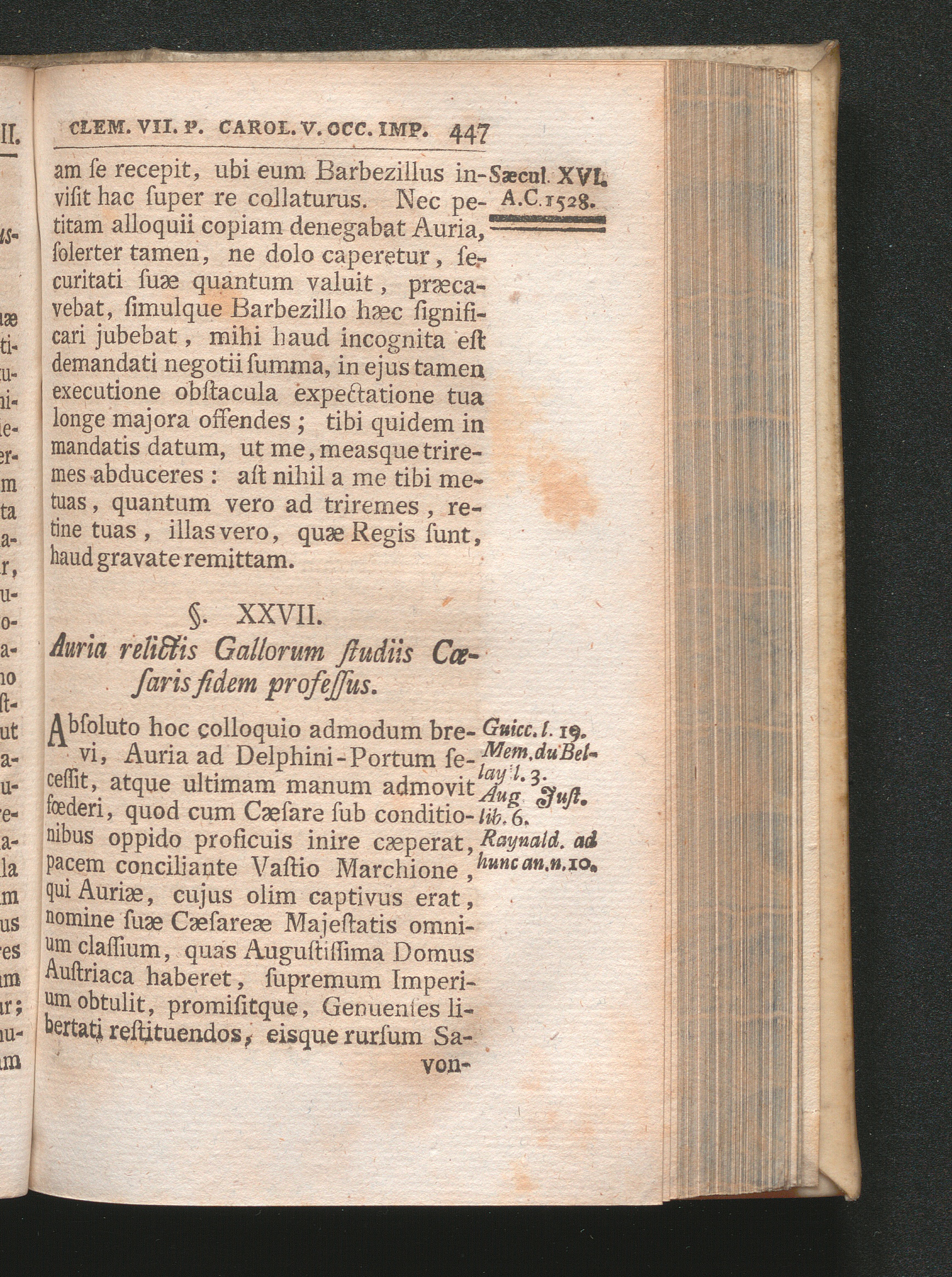 §. 27. Auria relictis Gallorum studiis Cæsaris fidem professus.