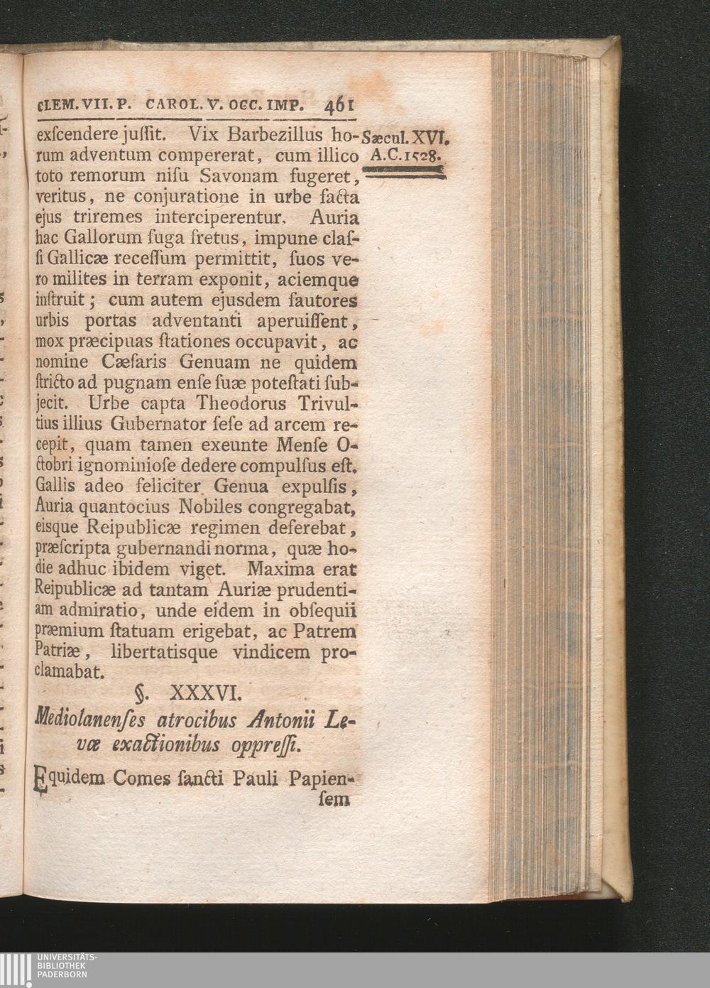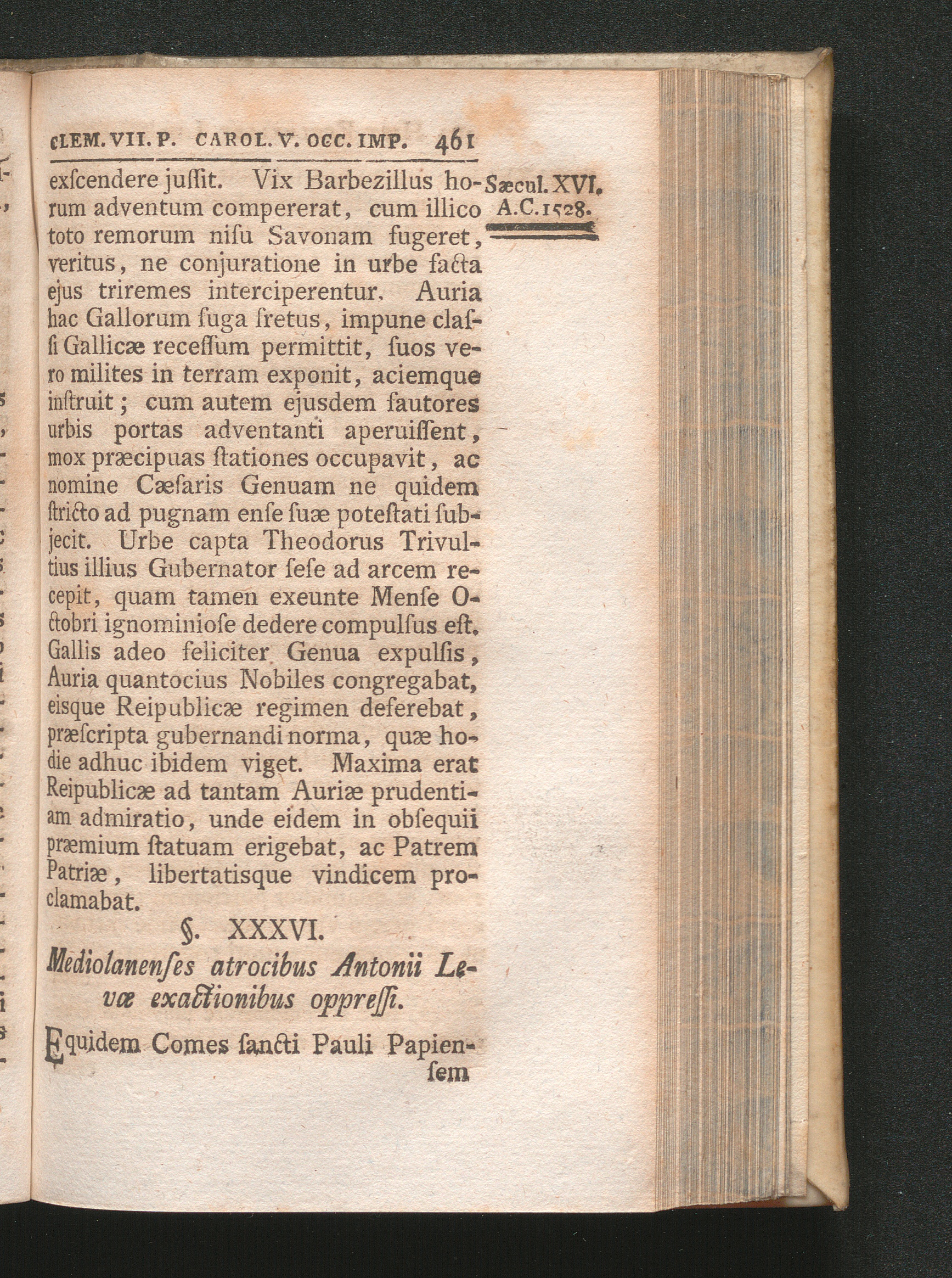 §. 36. Mediolanenses atrocibus Antonii Levæ exactionibus oppressi.