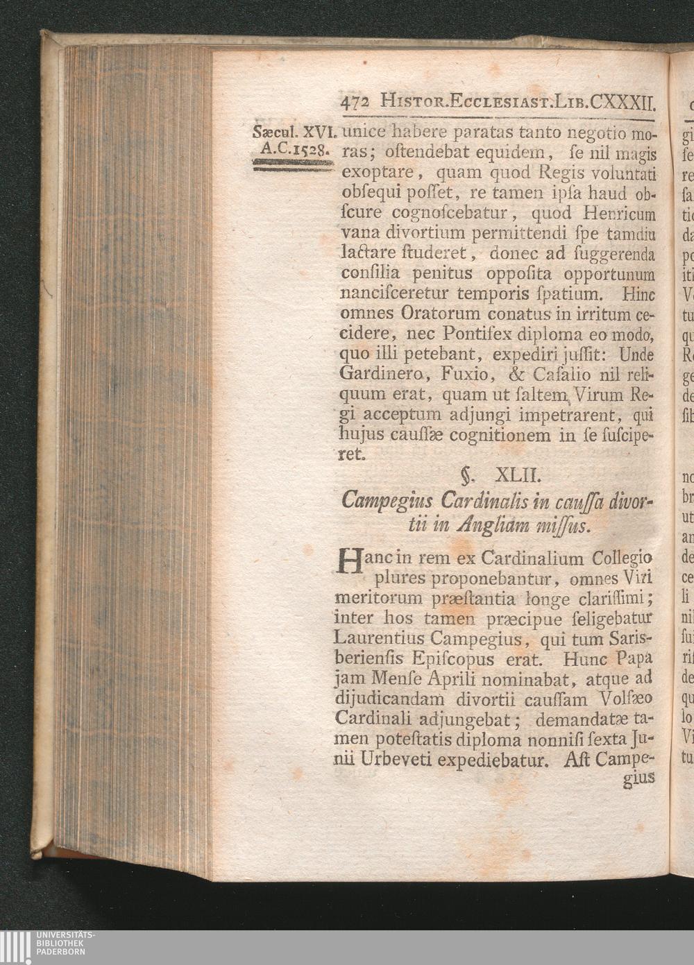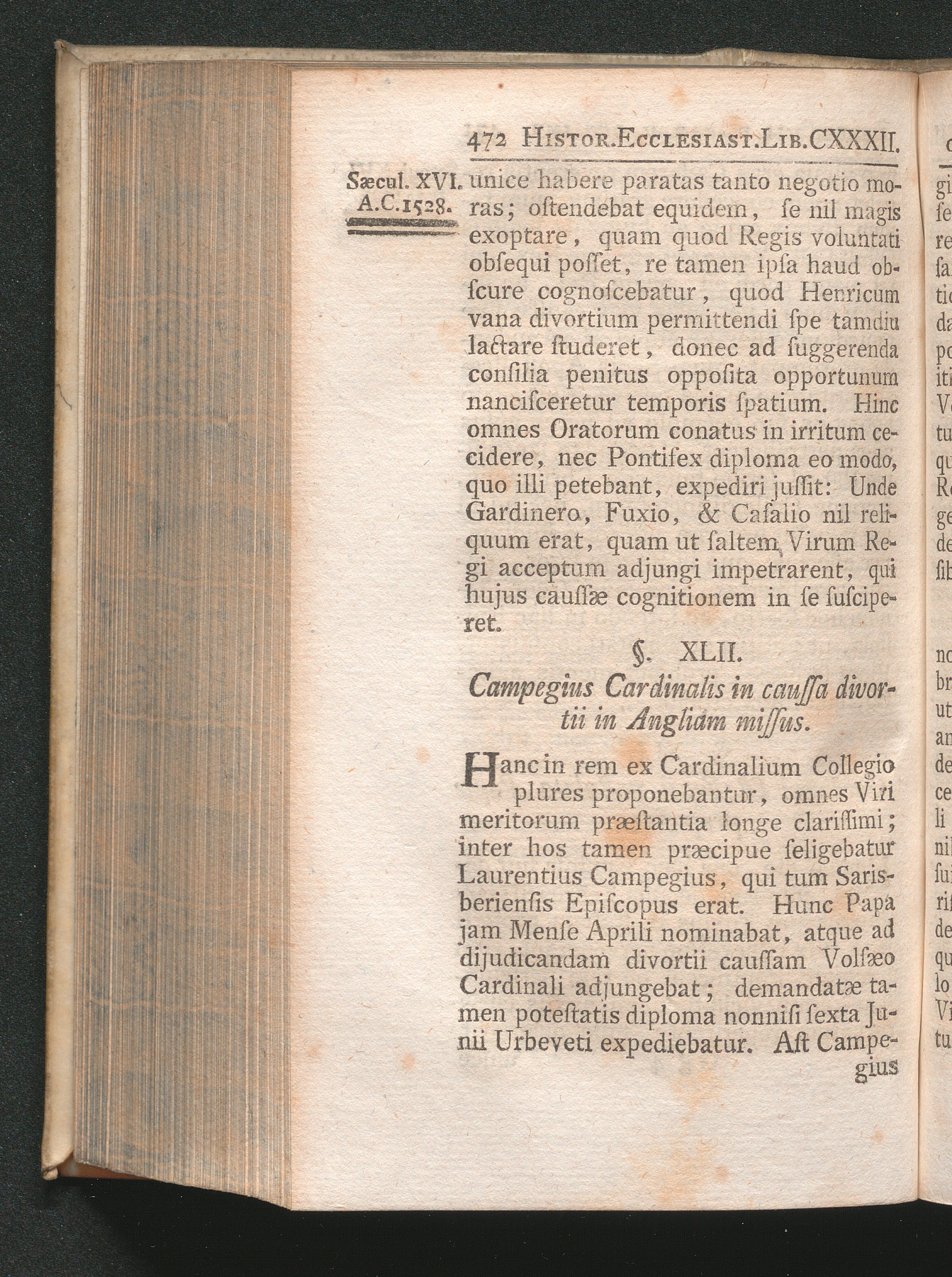 §. 42. Campegius Cardinalis in caussa divortii in Angliam missus.