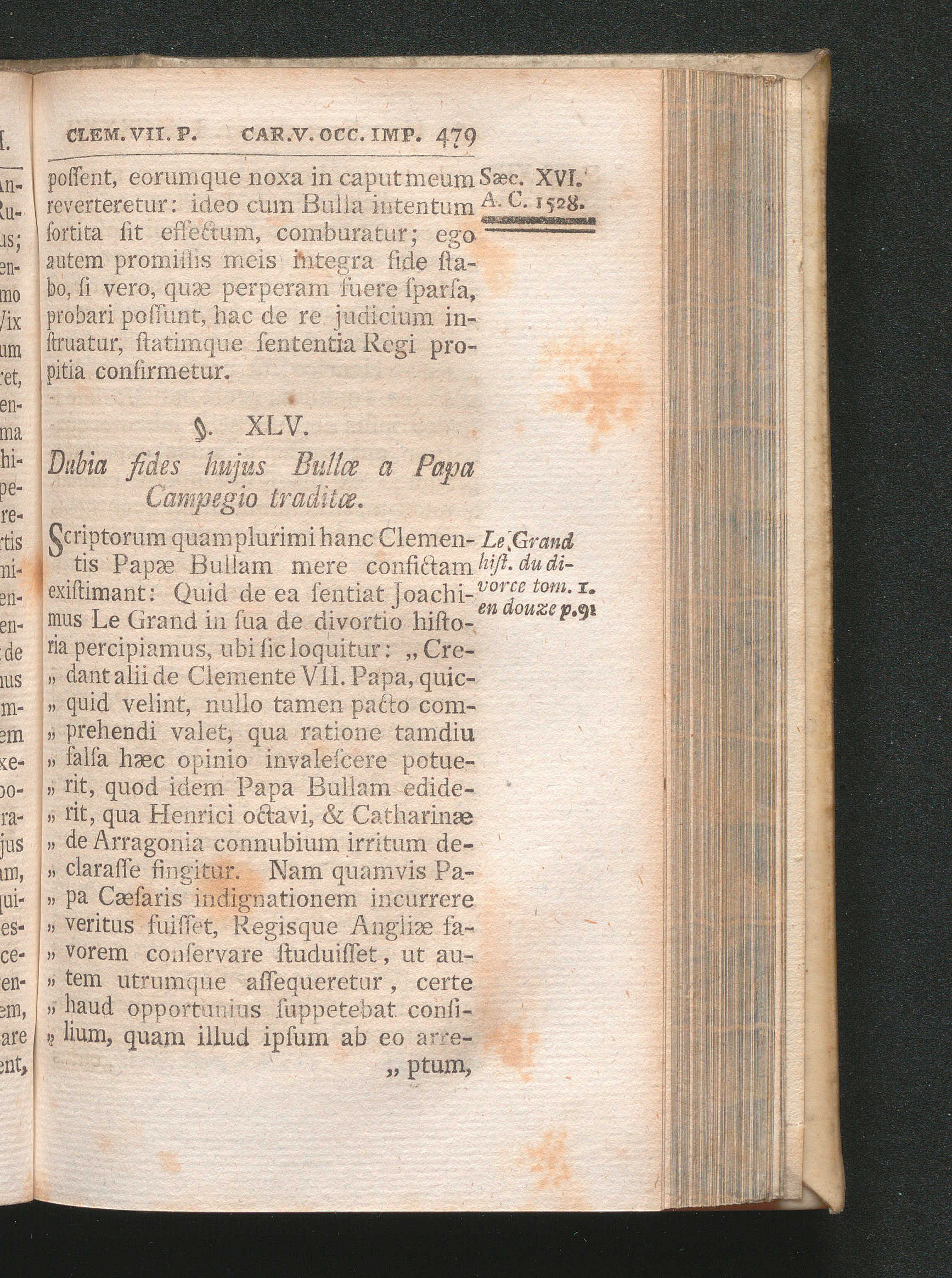 §. 45. Dubia Fides hujus Bullæ a Papa Campegio traditæ.