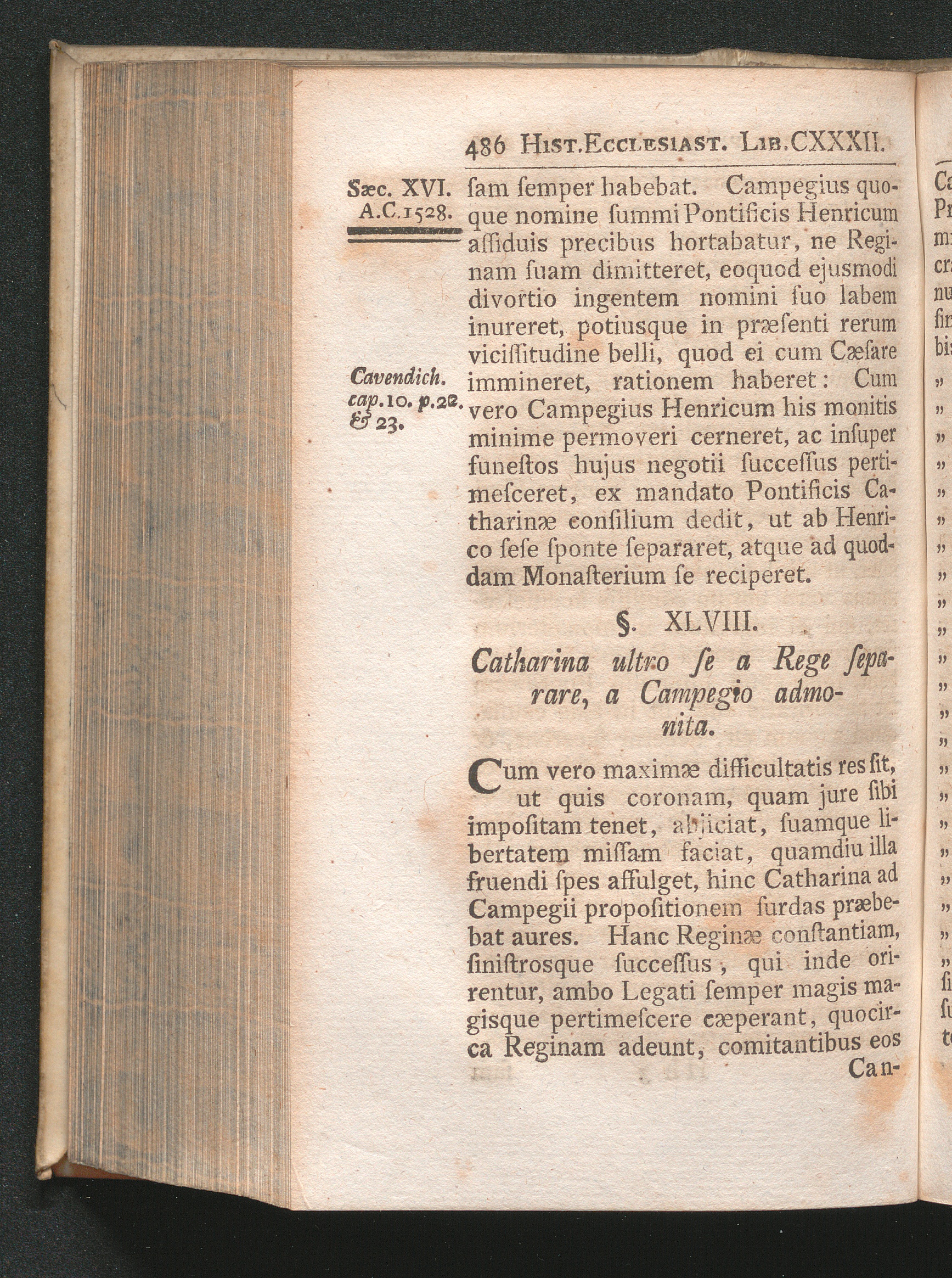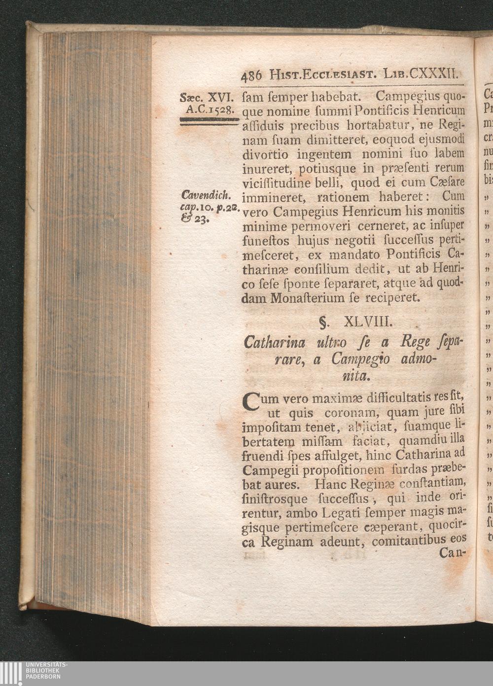 §. 48. Catharina ultro se a Rege separare, a Campegio admonita.