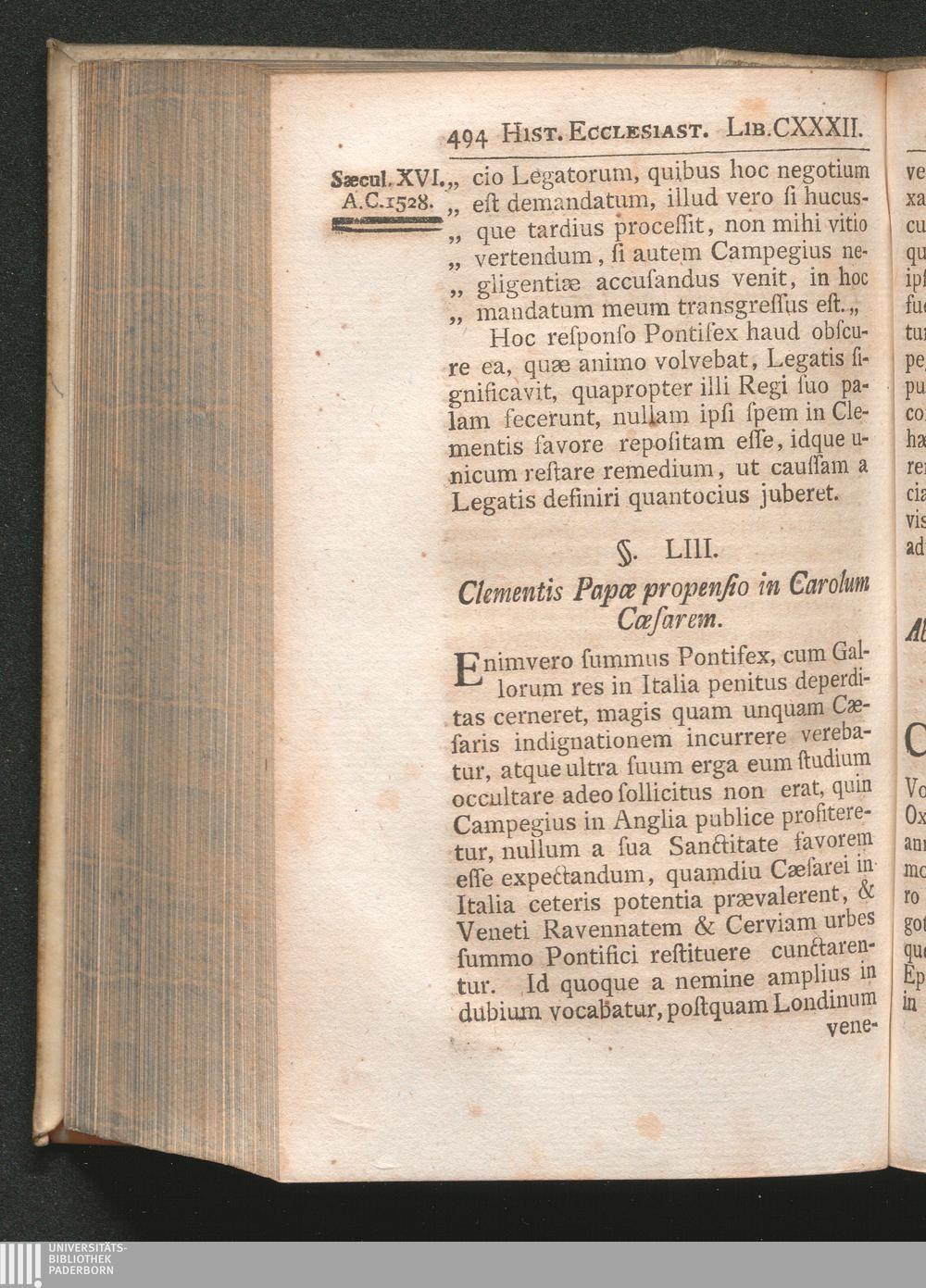 §. 53. Clementis Papæ propensio in Calorum Cæsarem.
