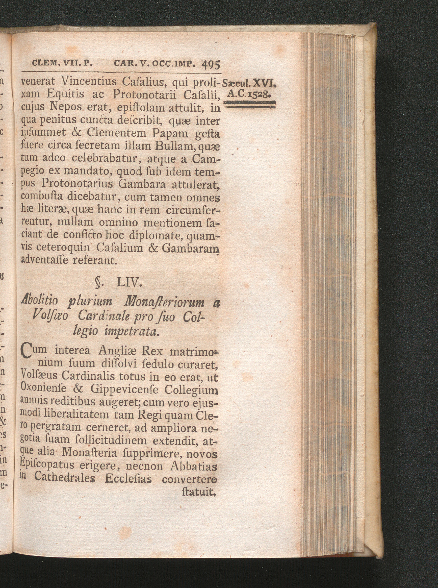 §. 54. Abolitio plurium Monasteriorum a Volsæo Cardinale pro suo Collegio impetr[...]